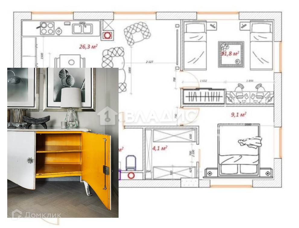 Общая площадь 65 м2