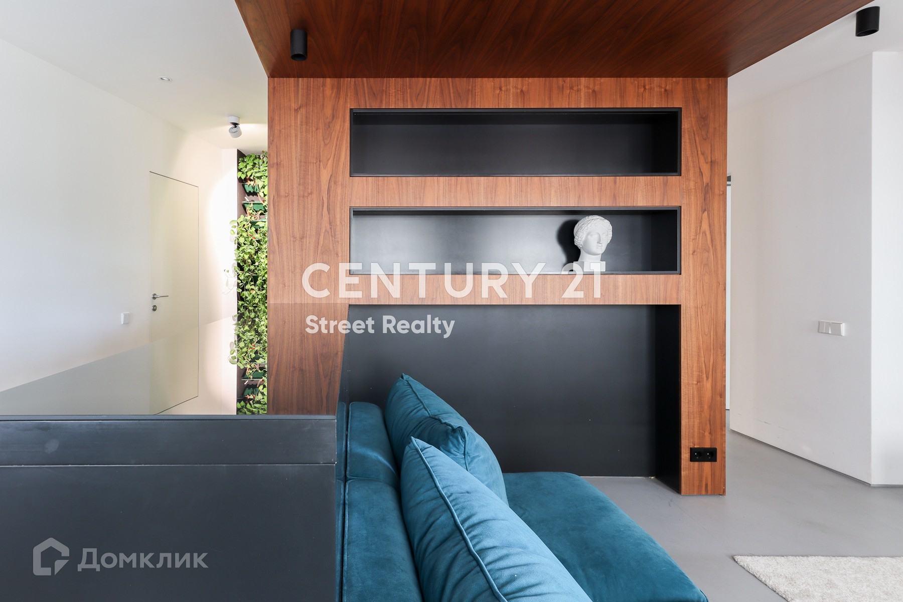 В квартире все продумано до мелочей: наливные теплые полы, управляемое освещение квартиры, немецкая встроенная техника, мебель BoConcept, проектор и барная стойка. Особое внимание привлекает зеленая стена с автоматическим климат-контролем, освещением и поливом.