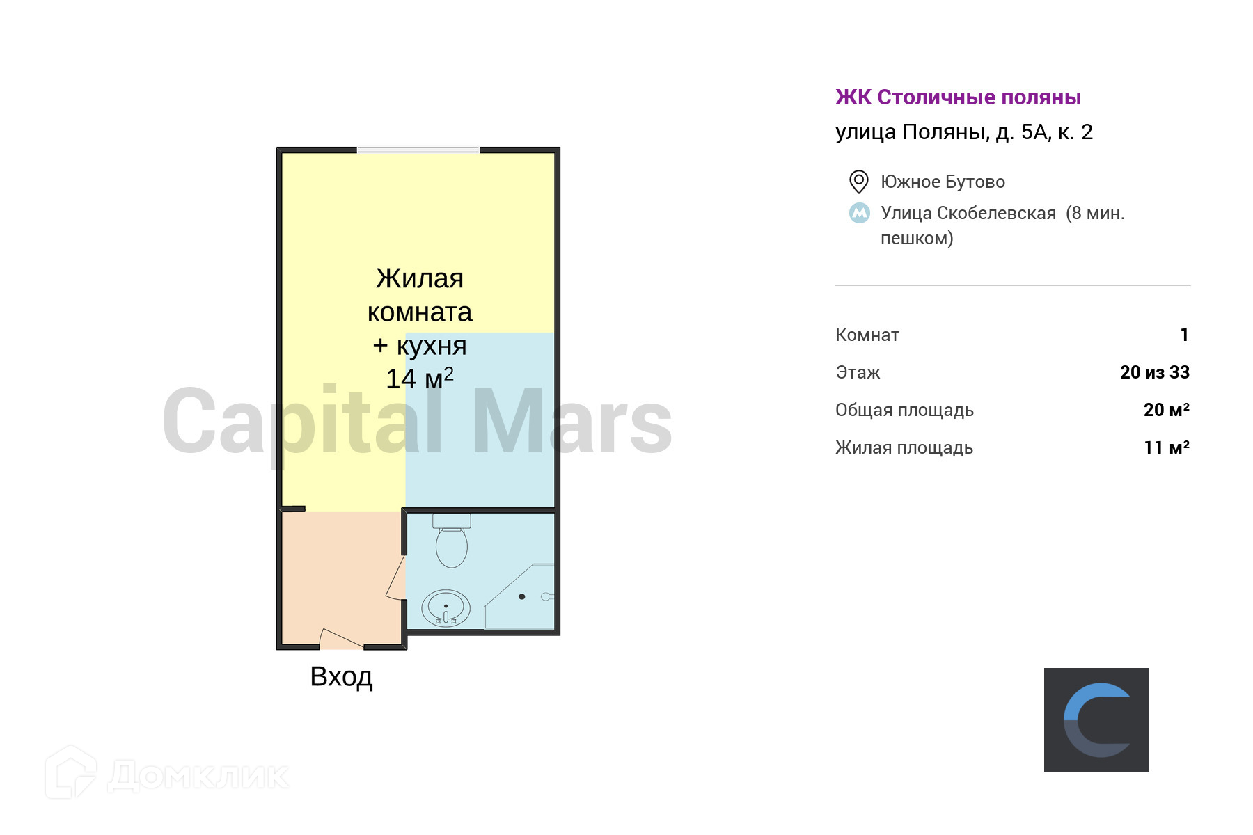 Общая площадь 20 м2
