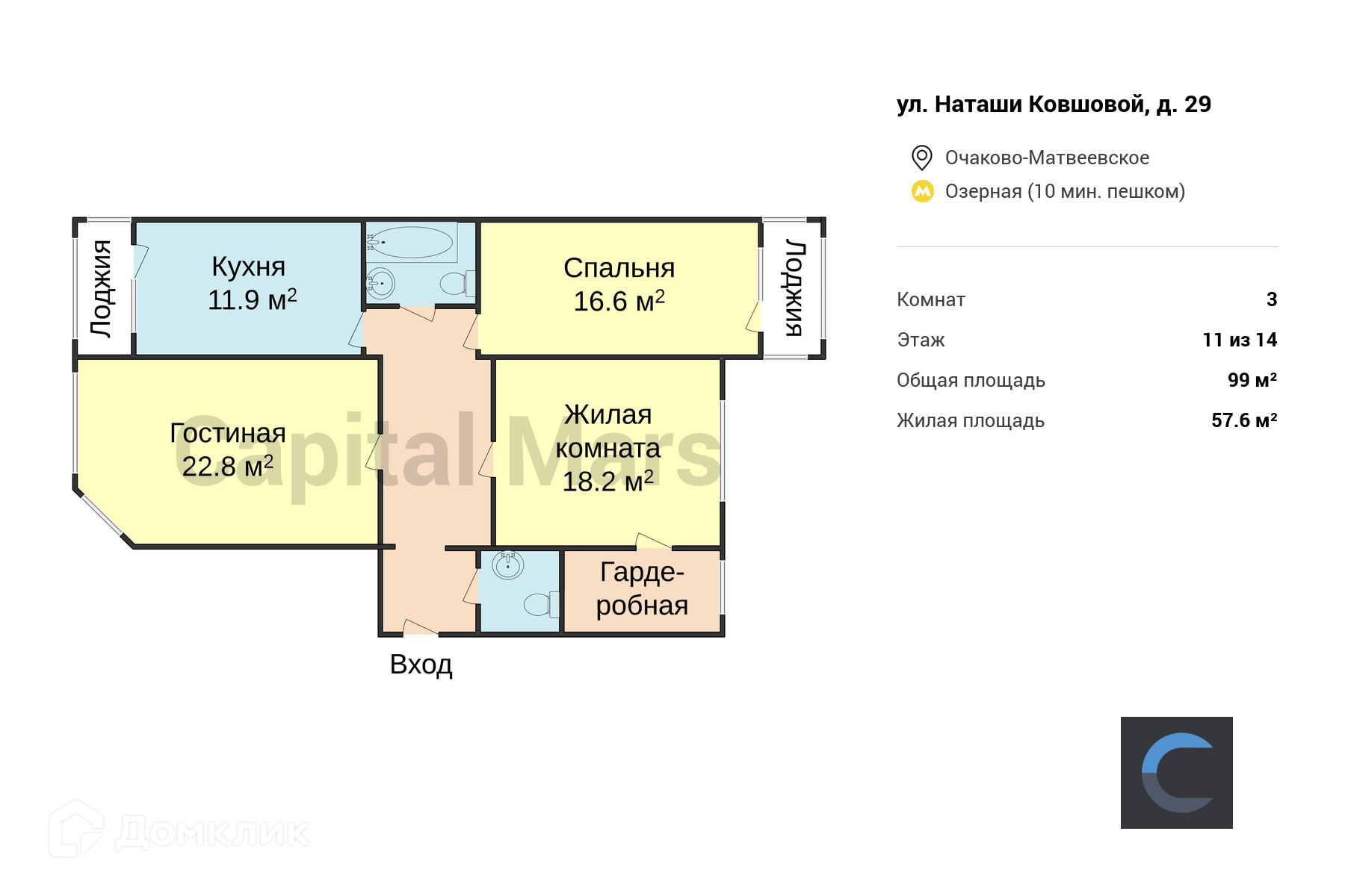 Общая площадь 99 м2