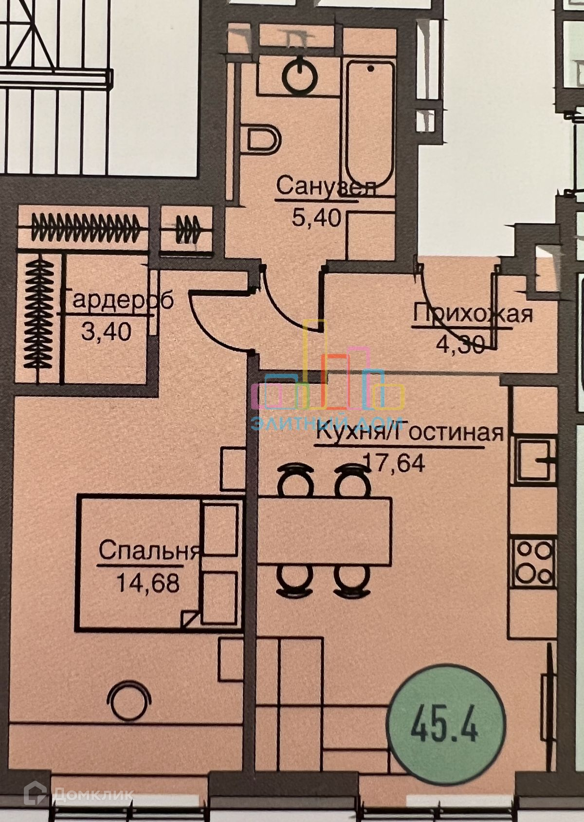 Общая площадь 46 м2