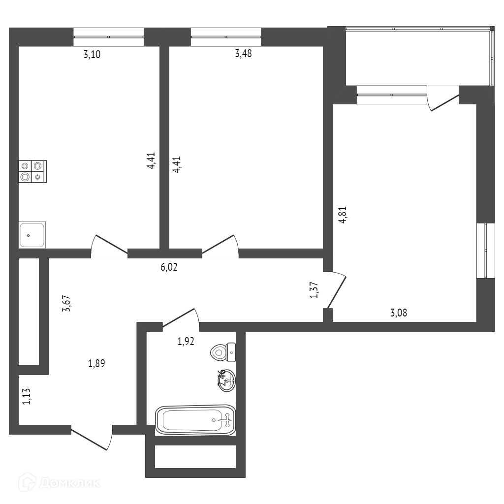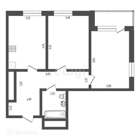 Общая площадь 63.3 м2