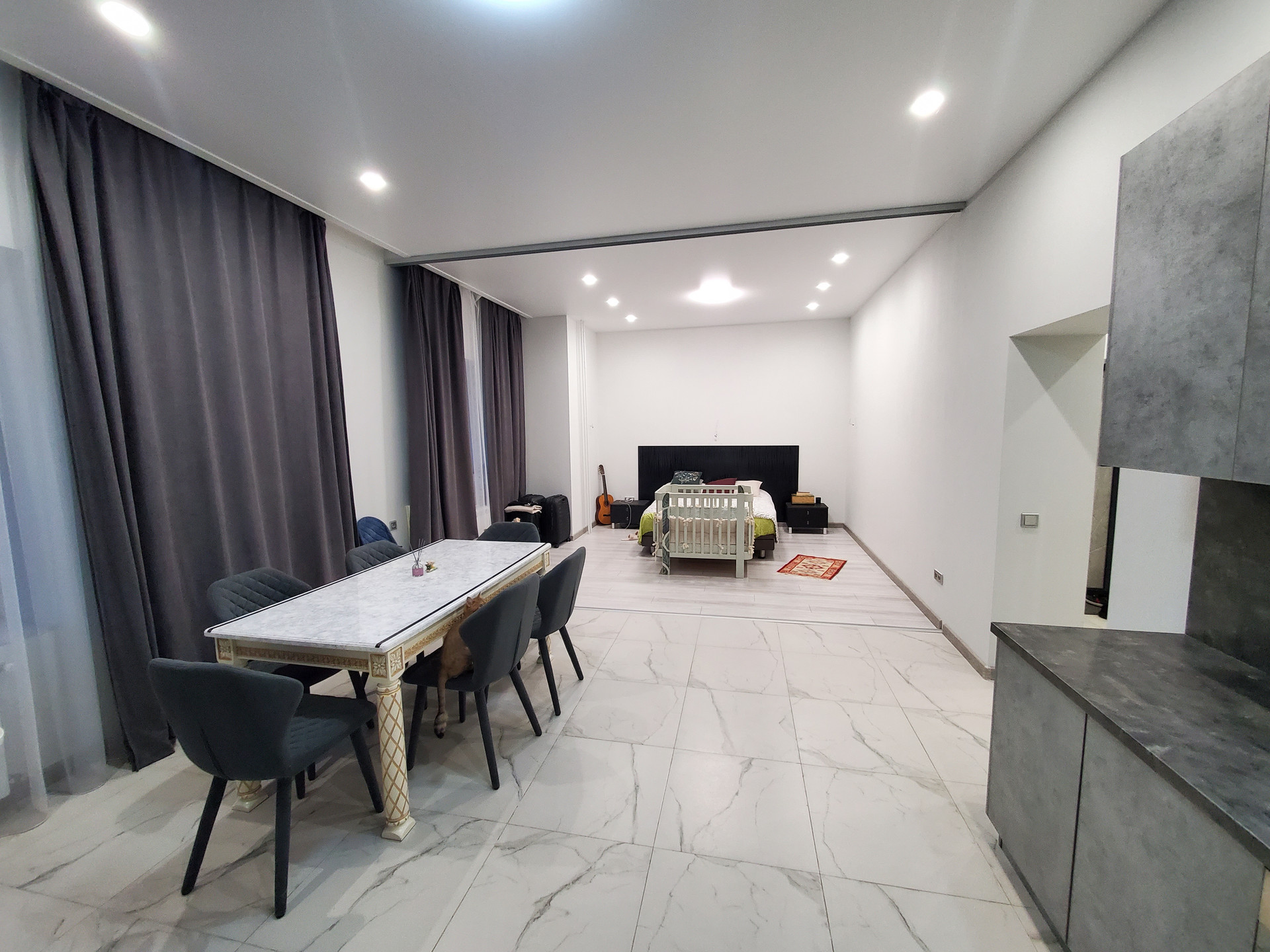 Квартира расположена на ВЫСОКОМ ПЕРВОМ ЭТАЖЕ, балкона нет, но за счет увеличена жилая зона. Продается ОДНОКОМНАТНАЯ квартира с КАЧЕСТВЕННЫМ КАПИТАЛЬНЫМ и ДОРОГИМ РЕМОНТОМ (в квартире СВОБОДНАЯ ПЛАНИРОВКА, но заранее установлено – рельсовая система разделения комнаты от кухни!  Общая площадь квартиры 52,2 кв.м, на 5 этаже 7 этажного дома.