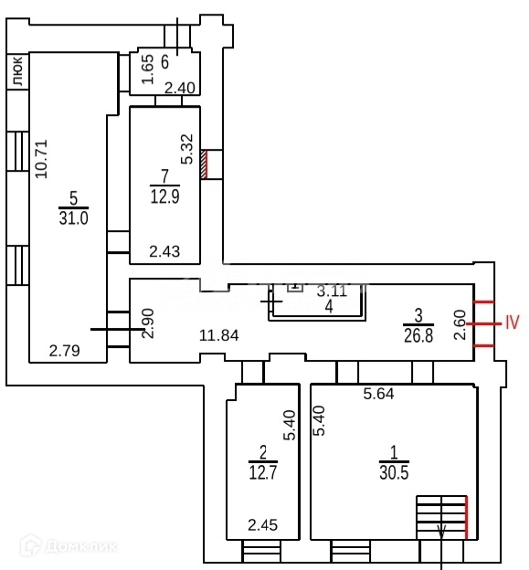 Имеется 4 окна (хорошая освещенность). Красный кирпич в идеальном состоянии