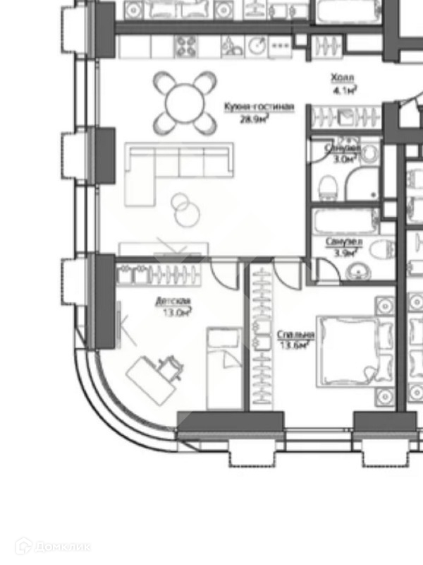 Квартира, спланированная в формате 3Е, представляет собой две спальни, просторную кухня-гостиную, холл, два санузла;