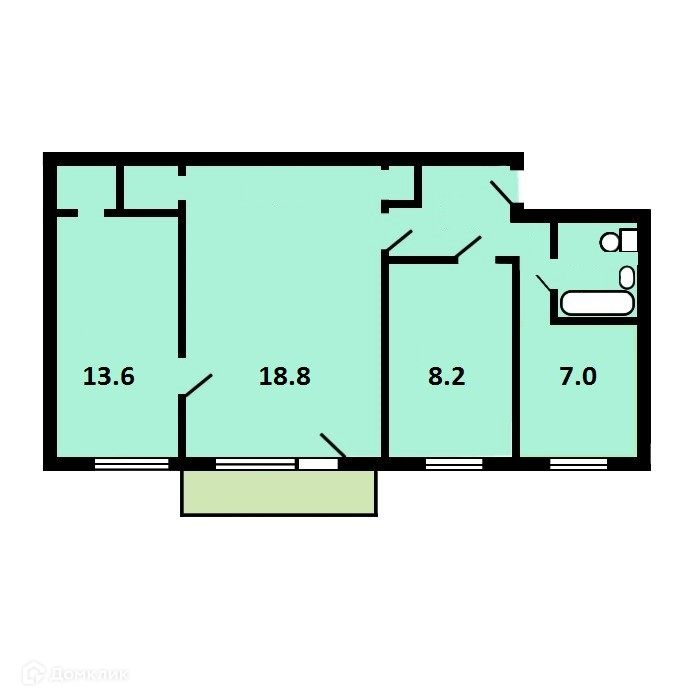 Жилая площадь 40.6 м2