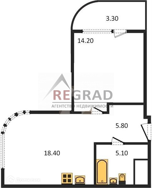 Жилая площадь 14 м2
