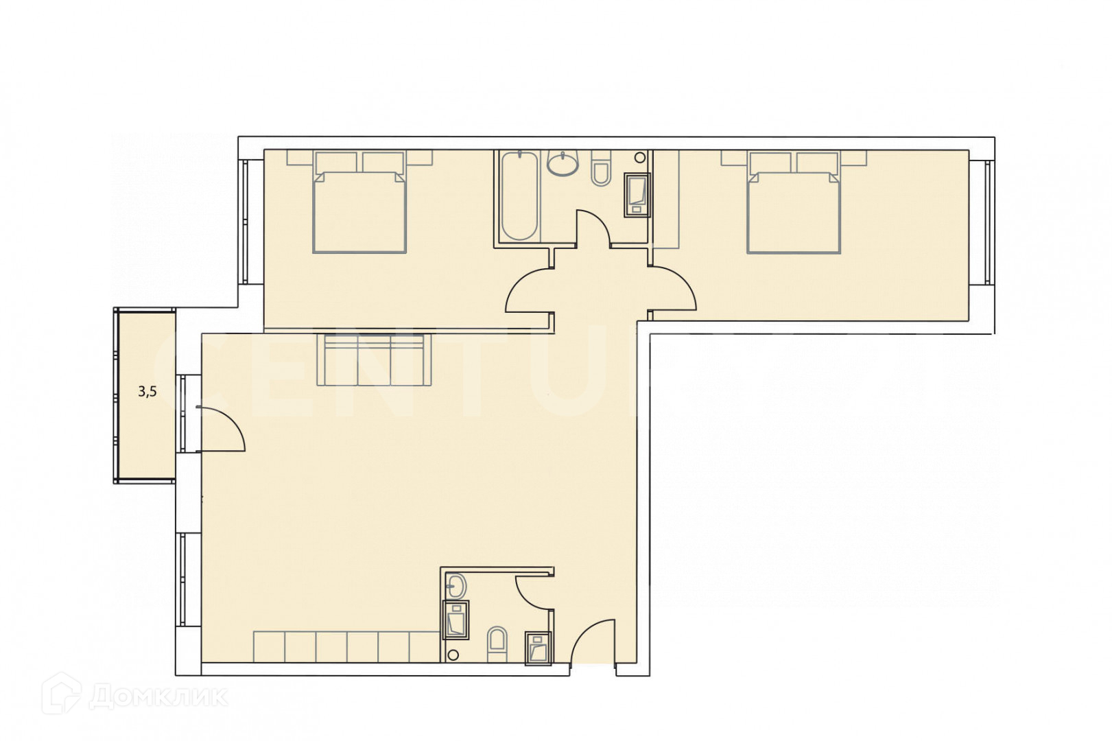 ПЛАНИРОВКА: прихожая, кухня-гостиная с застекленным балконом, 2 спальни, 2 санузла