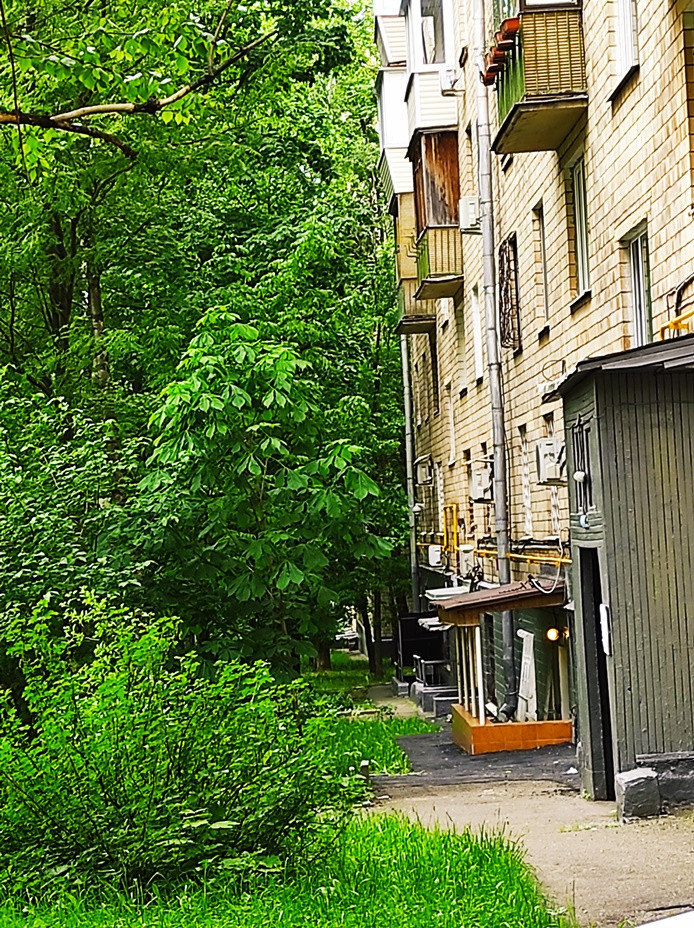 Кирпичный дом, окна квартиры выходят в зеленый ,тихий двор.