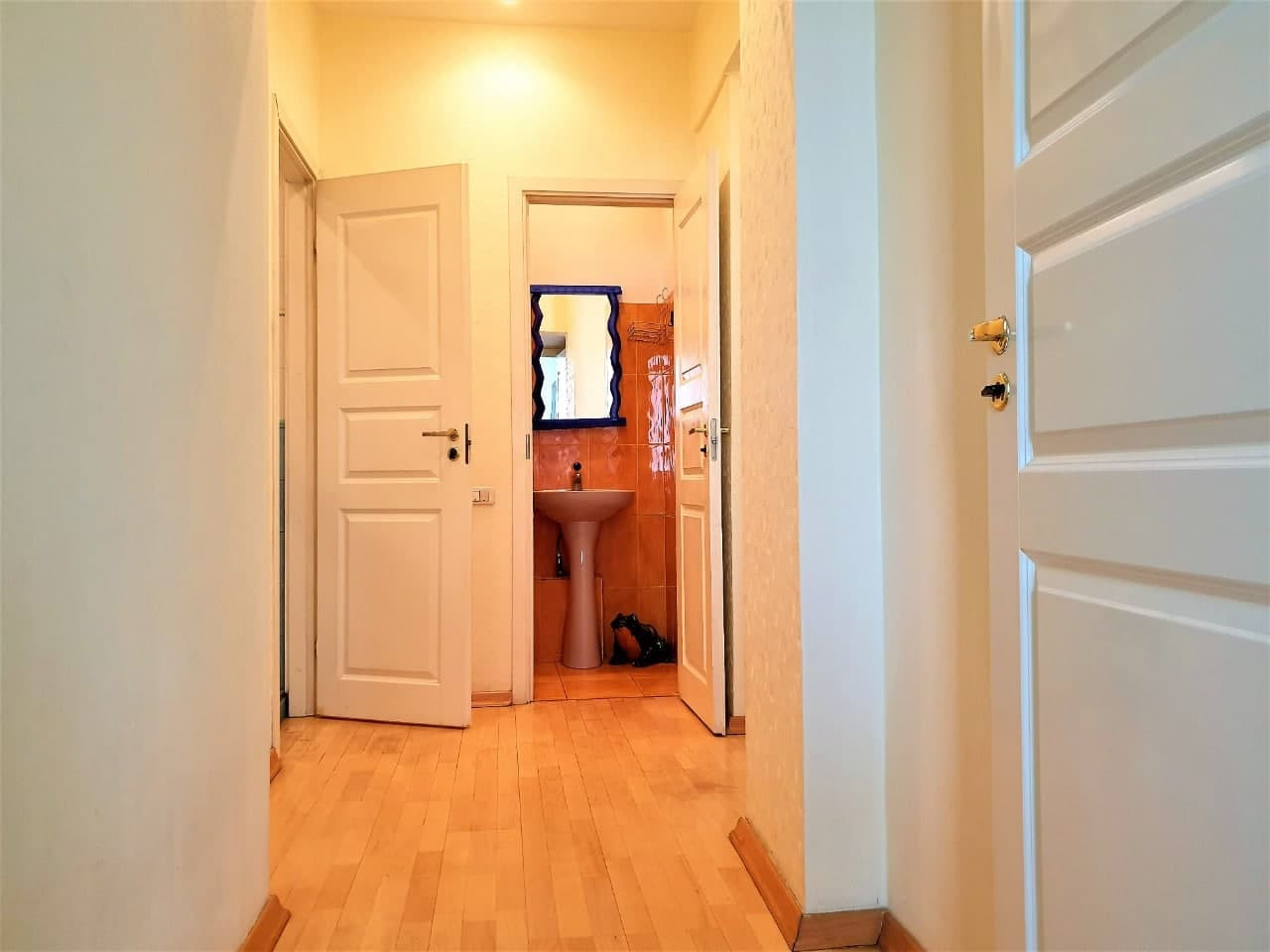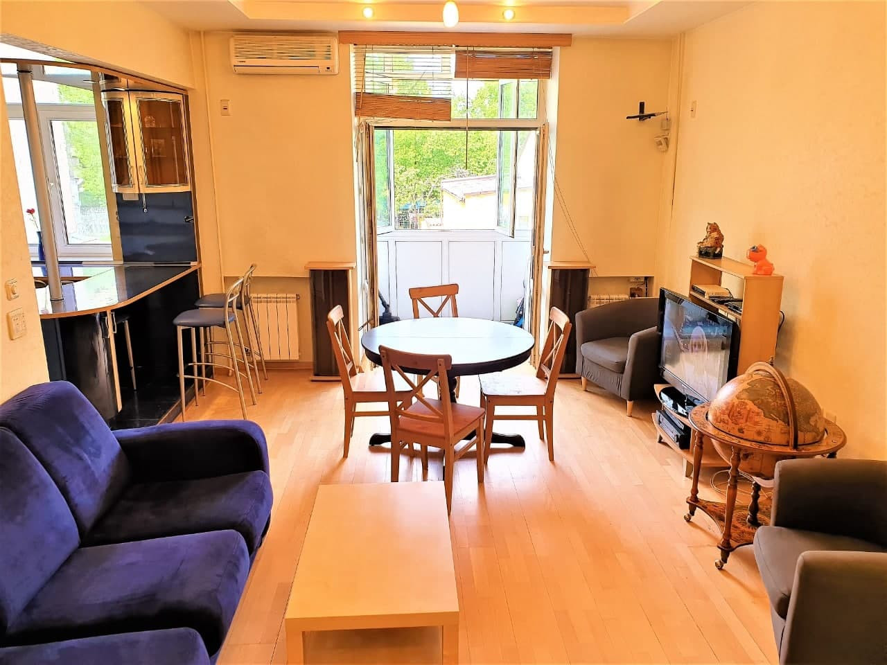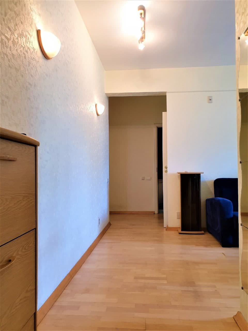 Полы – буковый паркет. Застекленная, утепленная лоджия, "французские" распашные 3-х стекольные окна (Триплекс).