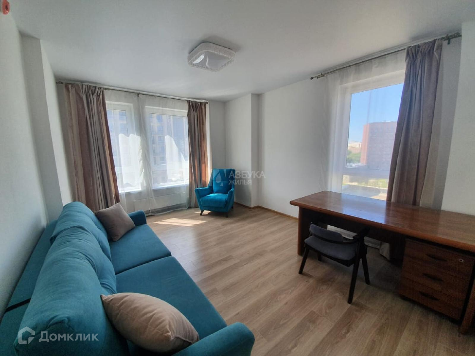 Вся мебель остается. Качественная встроенная кухня с посудомойкой, обеденная зона, две обставленные спальни (в каждой двуспальная кровать и шкаф), стенка в гостиной, два дивана, кресло, рабочий стол, и т.д. В прихожей два шкафа-купе для хранения вещей. Новая входная дверь, установлены итальянские светильники, повешены карнизы со шторами, стильное зеркало в санузле с подстветкой. Окна в квартире расположены по двум сторонам света, все во двор (не на дорогу и не окна в окна).