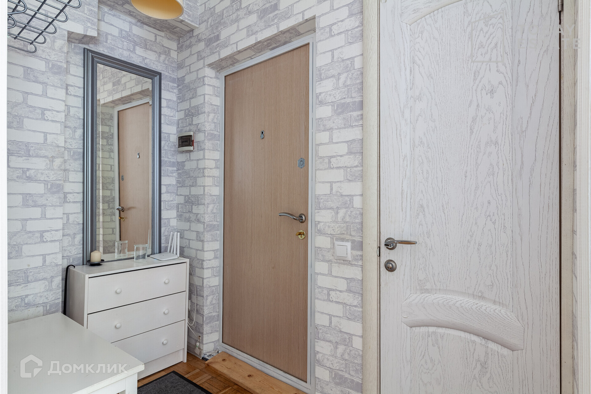 Планировкой квартиры предусмотрена кухня, совмещенный санузел, проходная комната и изолированная с небольшой гардеробной. В квартире установлен кондиционер, нагревательный бойлер. Без перепланировок.
