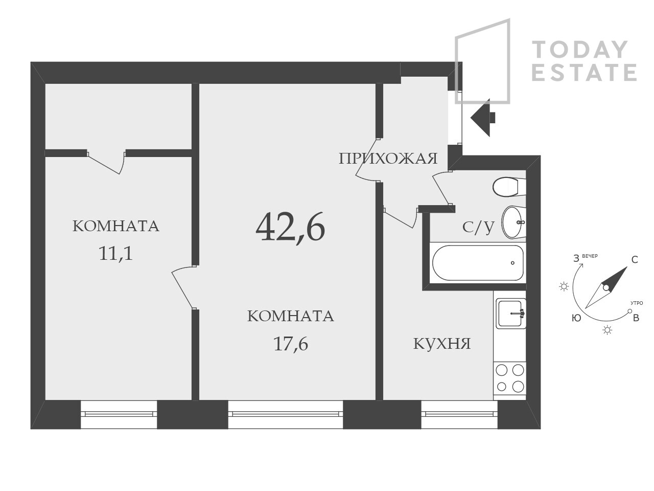 Общая площадь 42.6 м2