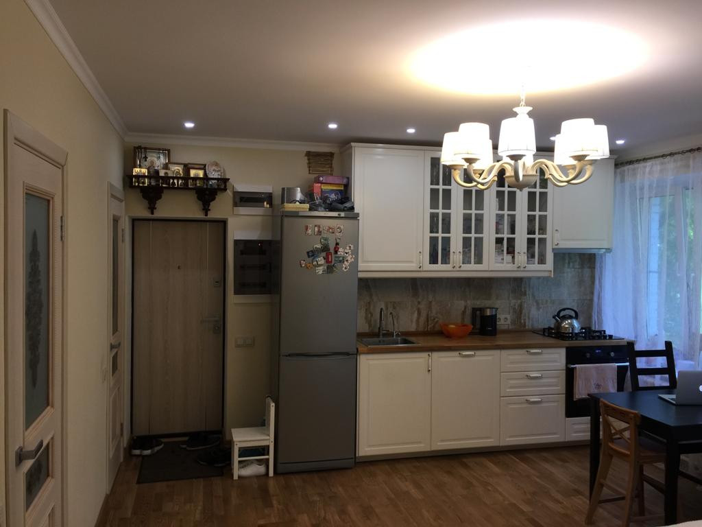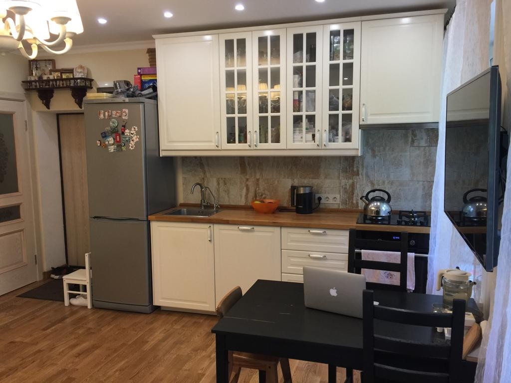 Вся мебель НОВАЯ, подобрана в едином стиле с сочетанием цветовых тонов. Бытовая техника так же вся НОВАЯ, включая встроенную посудомоечную машинку (широкая - 60 см.) и духовой шкаф. На полах штучная паркетная доска. Сан узел и ванная отделаны итальянской плиткой.