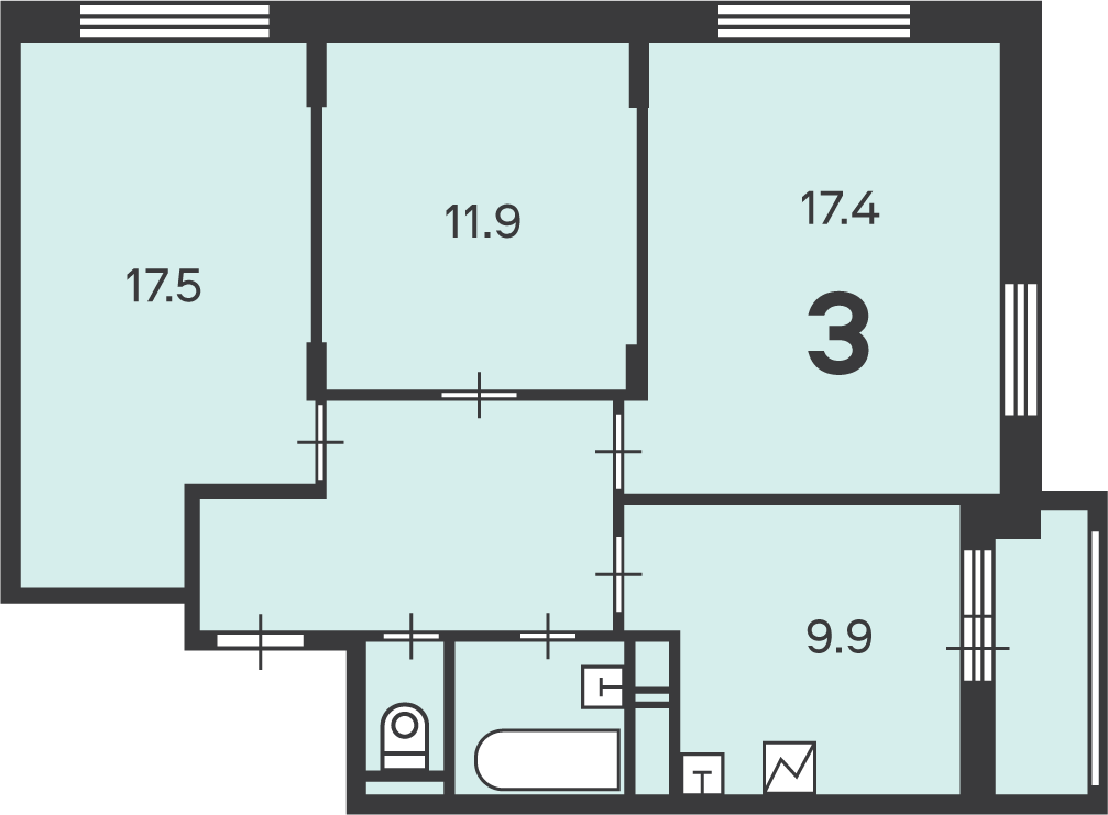 Количество комнат 3