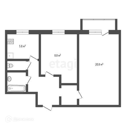 Общая площадь 44.6 м2