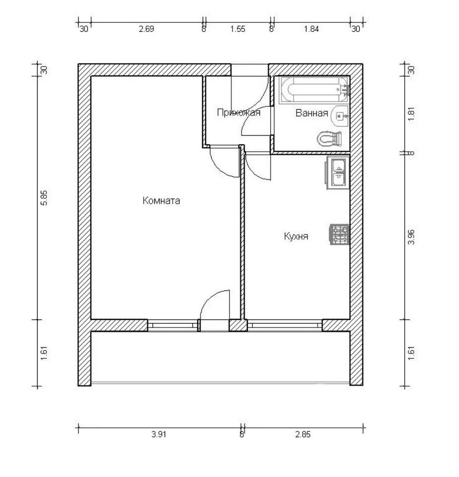 Балкон, лоджия 1 балкон