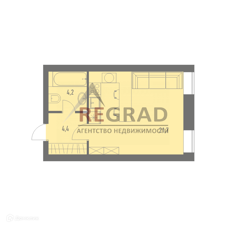 Жилая площадь 22 м2
