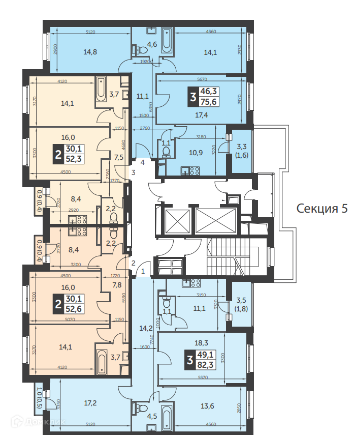 Общая площадь 75.6 м2