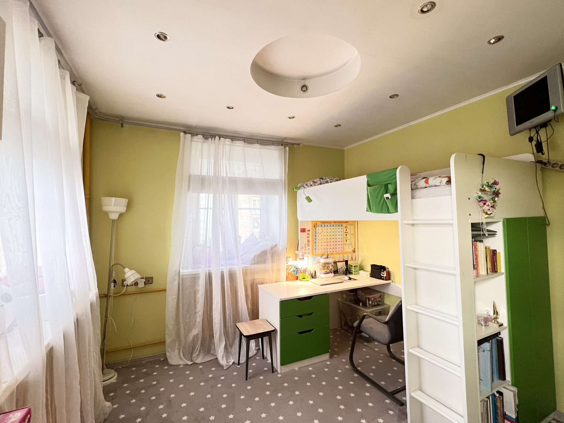 Сталинский дом со всеми вытекающими преимуществами - высокие потолки, широкие подоконники, большие коридоры, пятиметровая ванная комната с окном. Чистый подъезд с лифтом у двумя квартирами на этаже, технический этаж, благоустроенный двор со шлагбаумом, приличные соседи.