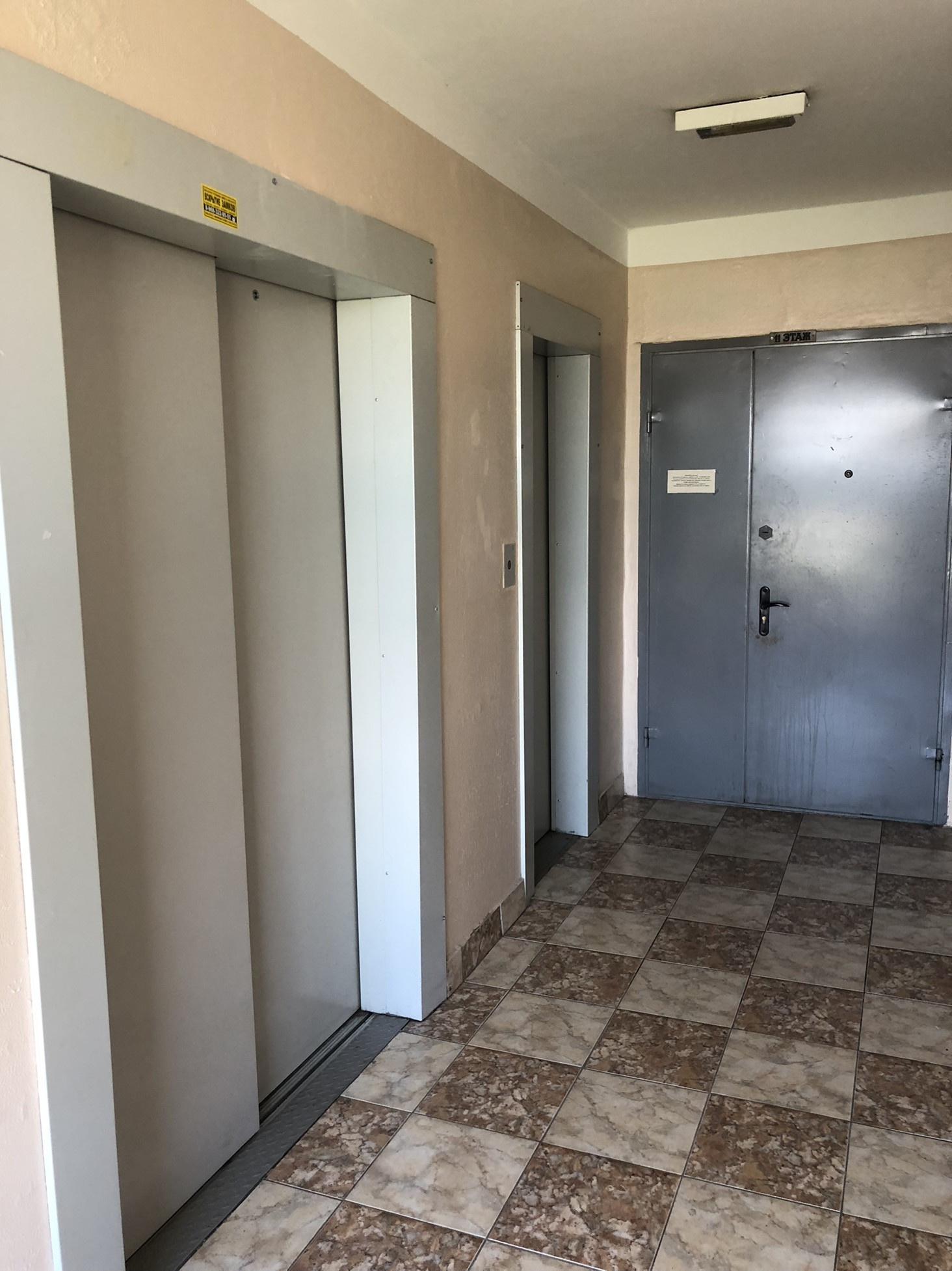 Аккуратный подъезд после ремонта, 2 лифта - пассажирский и грузовой.