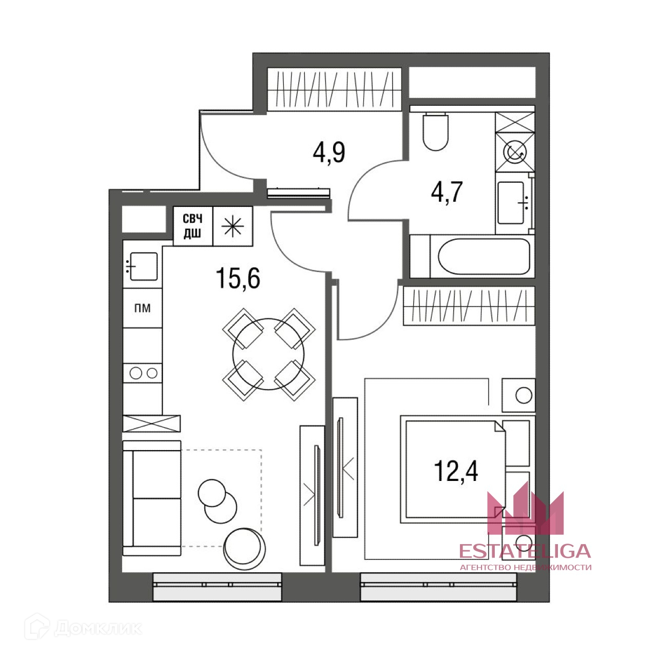 Жилая площадь 12.4 м2