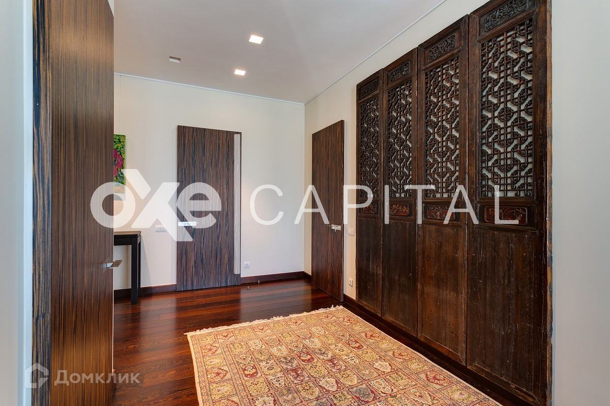 Комфортная планировка: кухня-столовая, вместительная гостиная (с биокамином) с зоной кинотеатра,  главная мастер-спальня 24 кв м с санузлом и гардеробной, 2 детские комнаты (17 и 21 метр) с санузлом и гардеробной, гостевой санузел. Квартира меблирована и готова принять новых собственников.