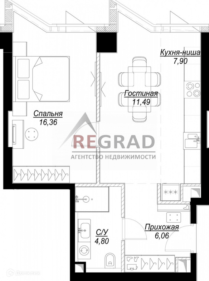 Грамотная планировка - кухня-гостиная, спальня, просторный санузел, гардеробная