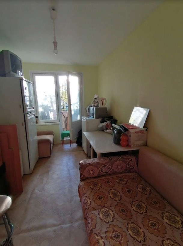 Продается квартира-студия 15.5 кв.м.с лоджией 2.95кв.м,с окном во двор.Требуется ремонт,высокий первый этаж. В доме произведен капитальный ремонт , новый яркий фасад бело-зелёного цвета, выполнен ремонт и в подъезде,чисто и красиво,замена стояков и батарей, коммуникаций.В стоимость входит качественный ремонт в общем тамбуре,установка шумоизоляционной двери,возведение санузла,подводка в студию мокрой и энерго-точек,вентиляционного короба.Парковка стихийная,мест достаточно.