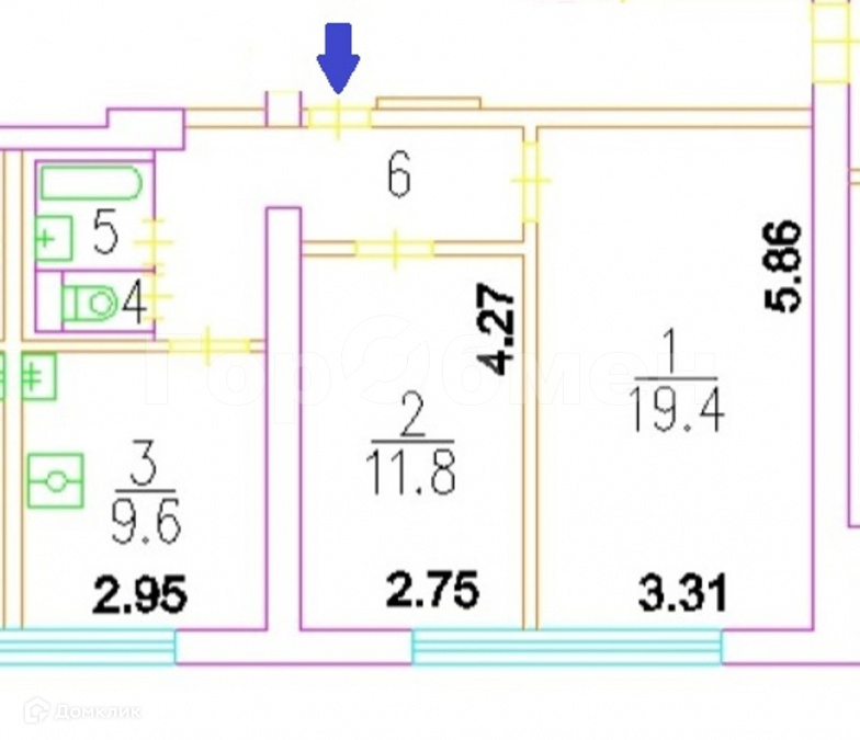 Общая площадь 52 м2