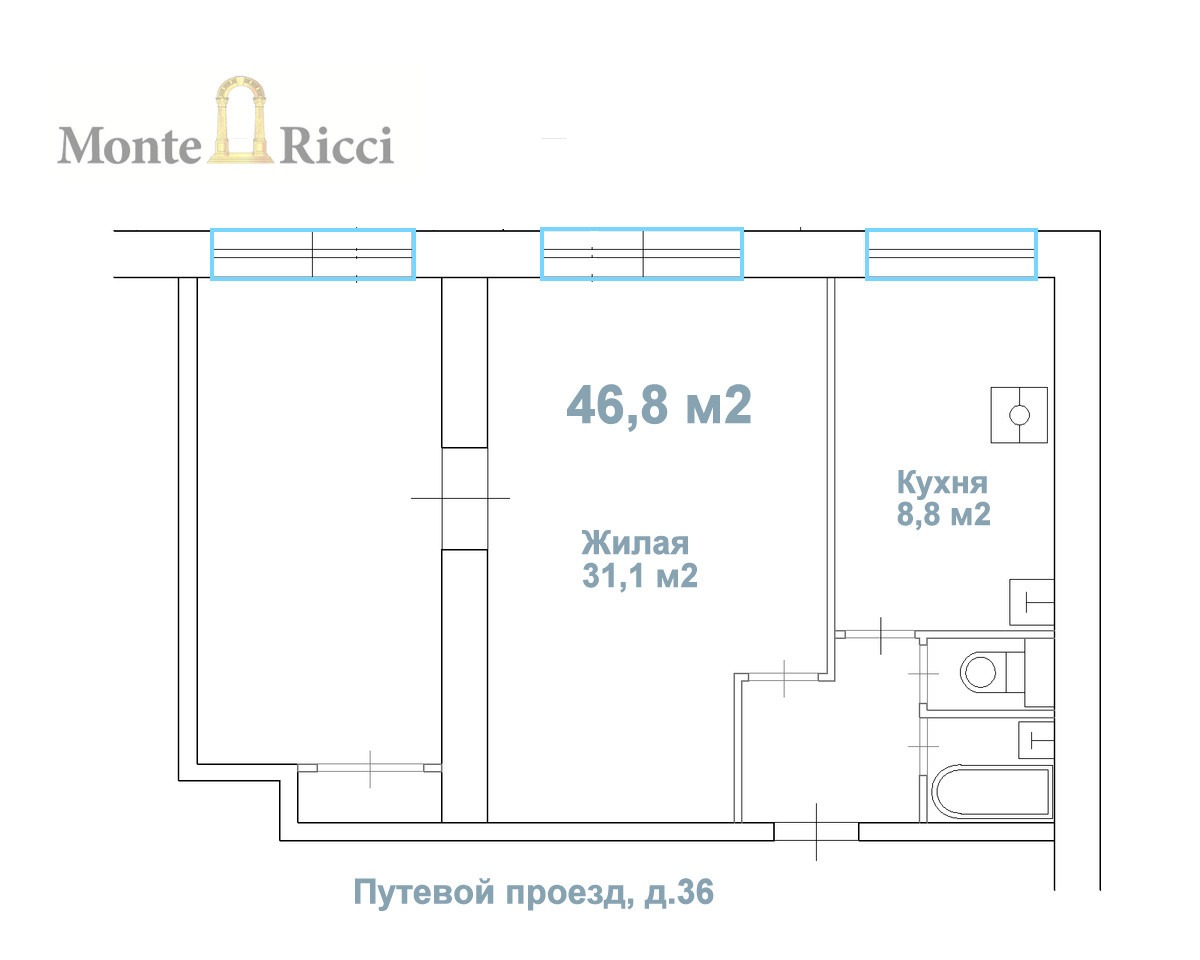 2-комнатная квартира, 47 м2, этаж 1 / 12, на продажу в Москве, Путевой проезд, 36