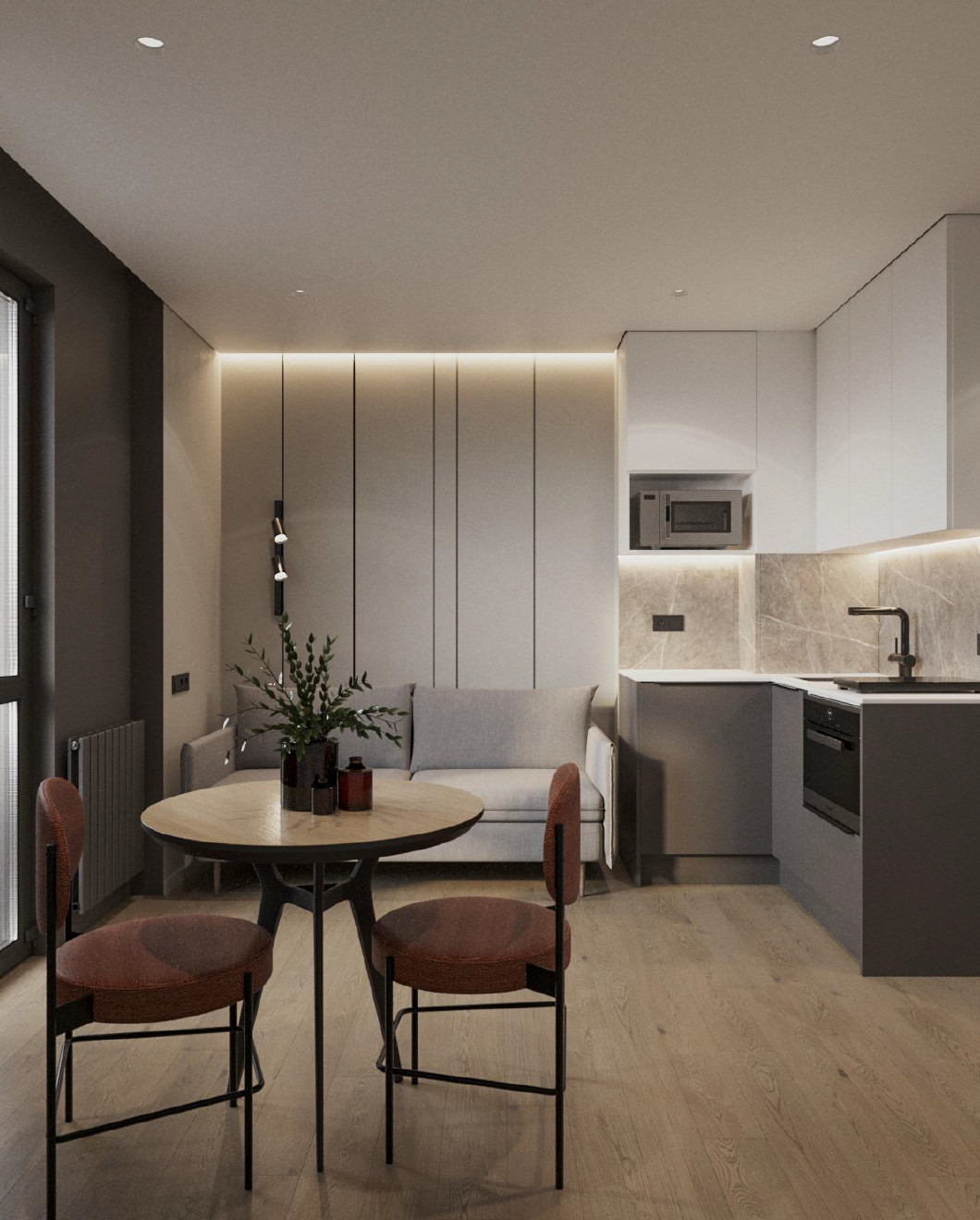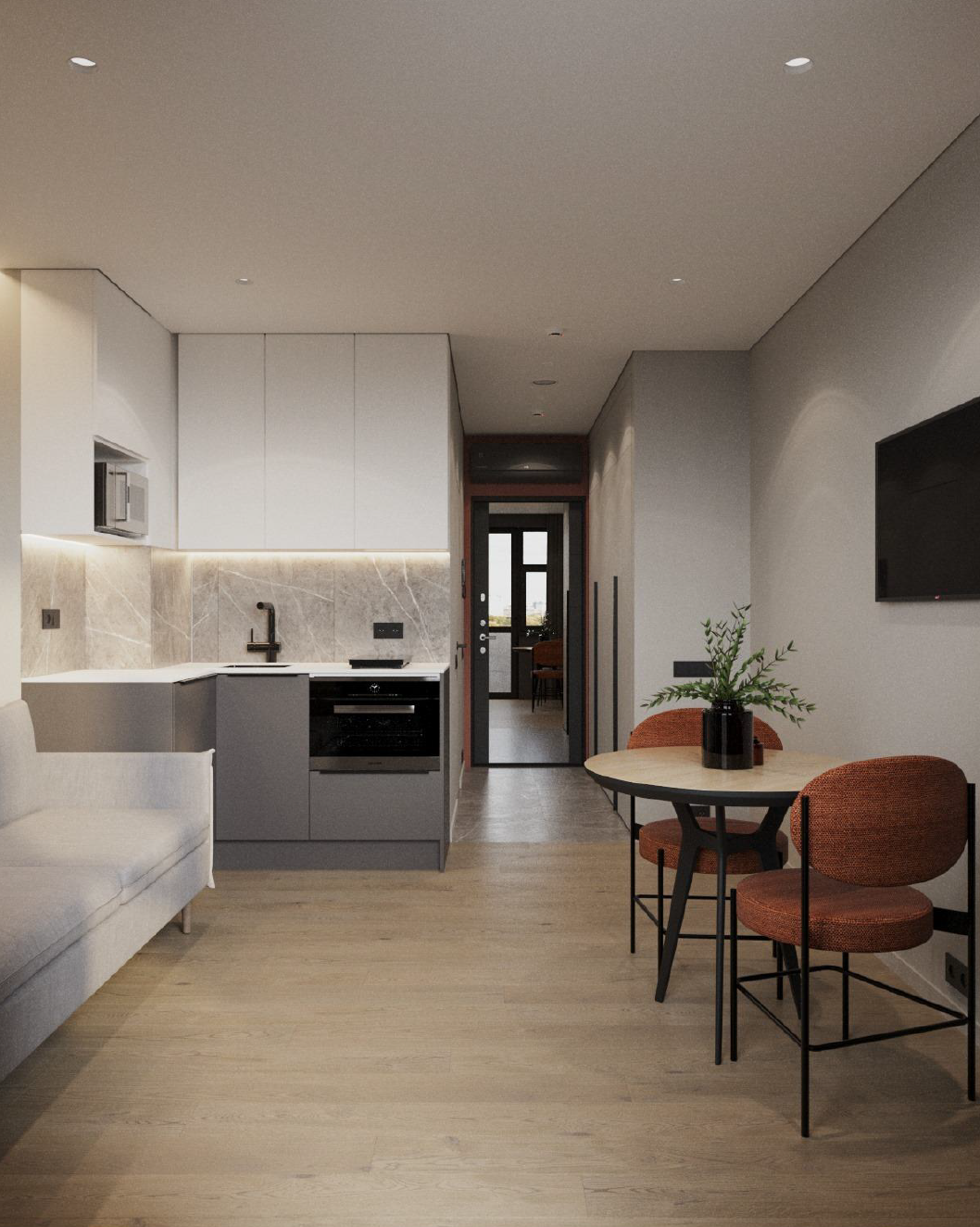 В студии выполнена высококачественная дизайнерская отделка и полное оснащение: