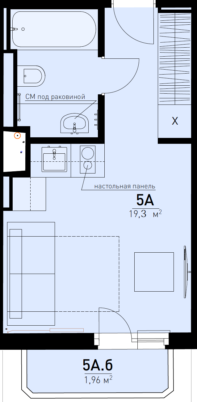 Общая площадь 19.3 м2