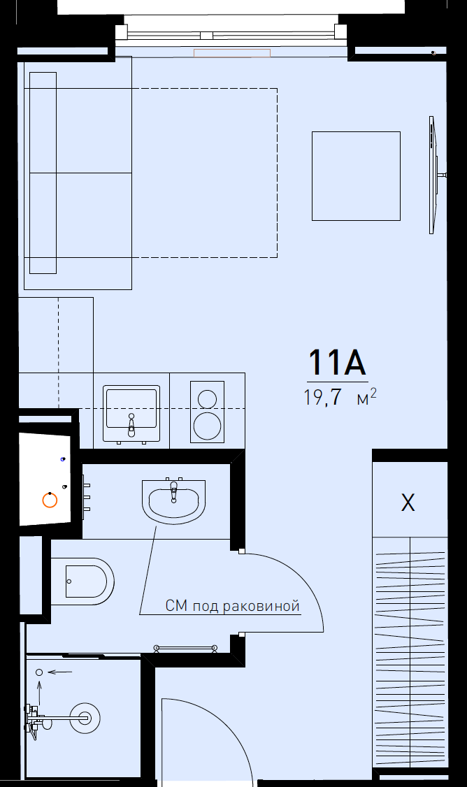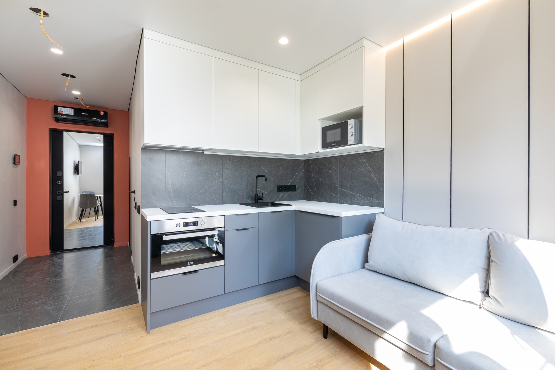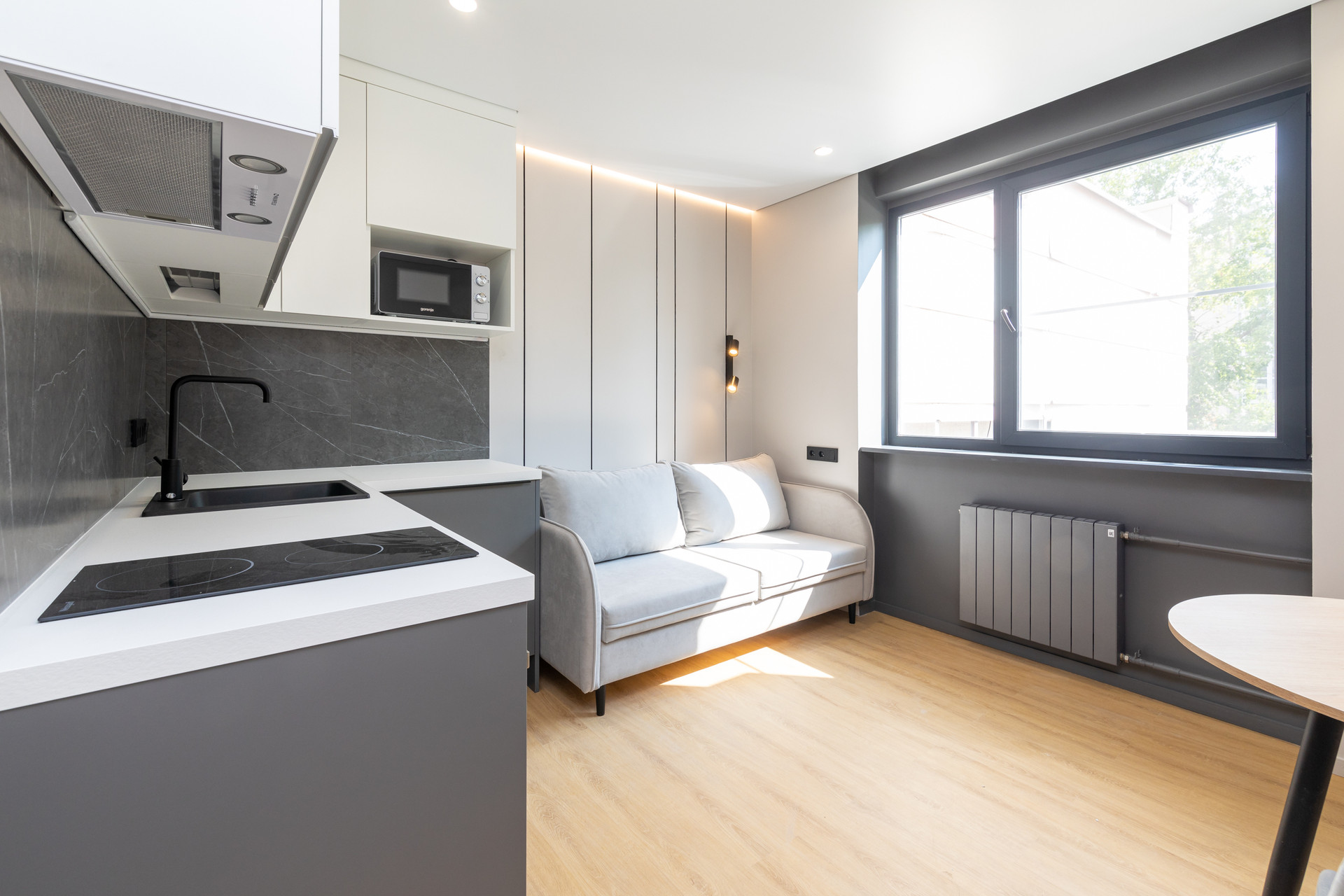 В студии выполнена высококачественная дизайнерская отделка и полное оснащение: