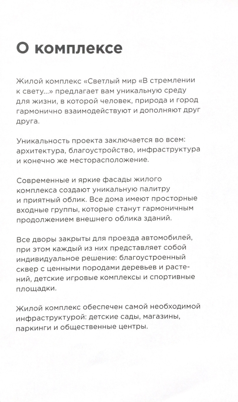 Жилой комплекс "В стремлении к свету" расположен по адресу ул. Илимская, вл. 3/5. Внутренние пространства комплекса будут не только красивым, но и функциональными. Для этого запланирована реализация технологии безбарьерной среды. Отсутствие бордюров и ограждений внутри квартала сделает перемещение по территории удобным и не ограничит возможность доступа как во дворы, так и в жилые помещения для маломобильных групп населения, родителей с колясками и велосипедистов.