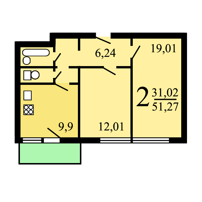 Общая площадь 51.3 м2