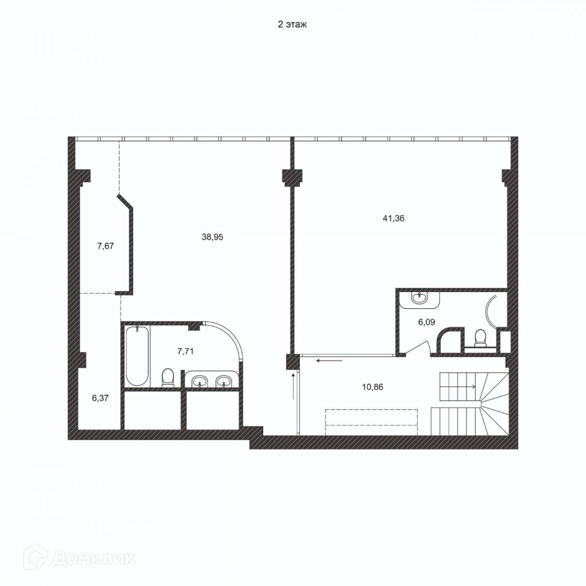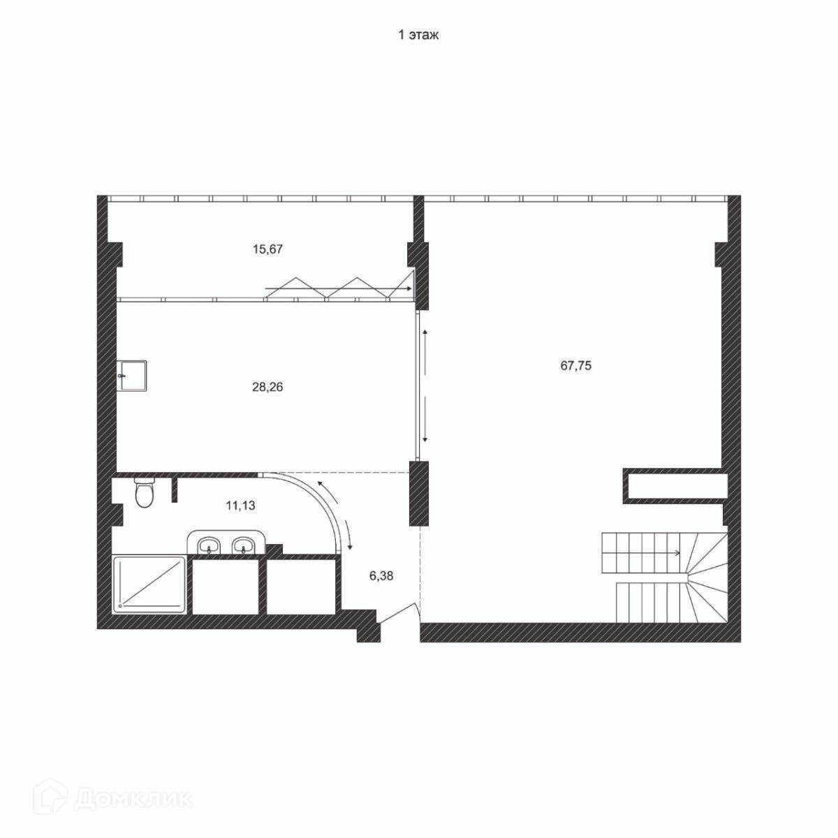 1-й этаж: прихожая-гардероб, санузел с ванной, кухня, гостиная