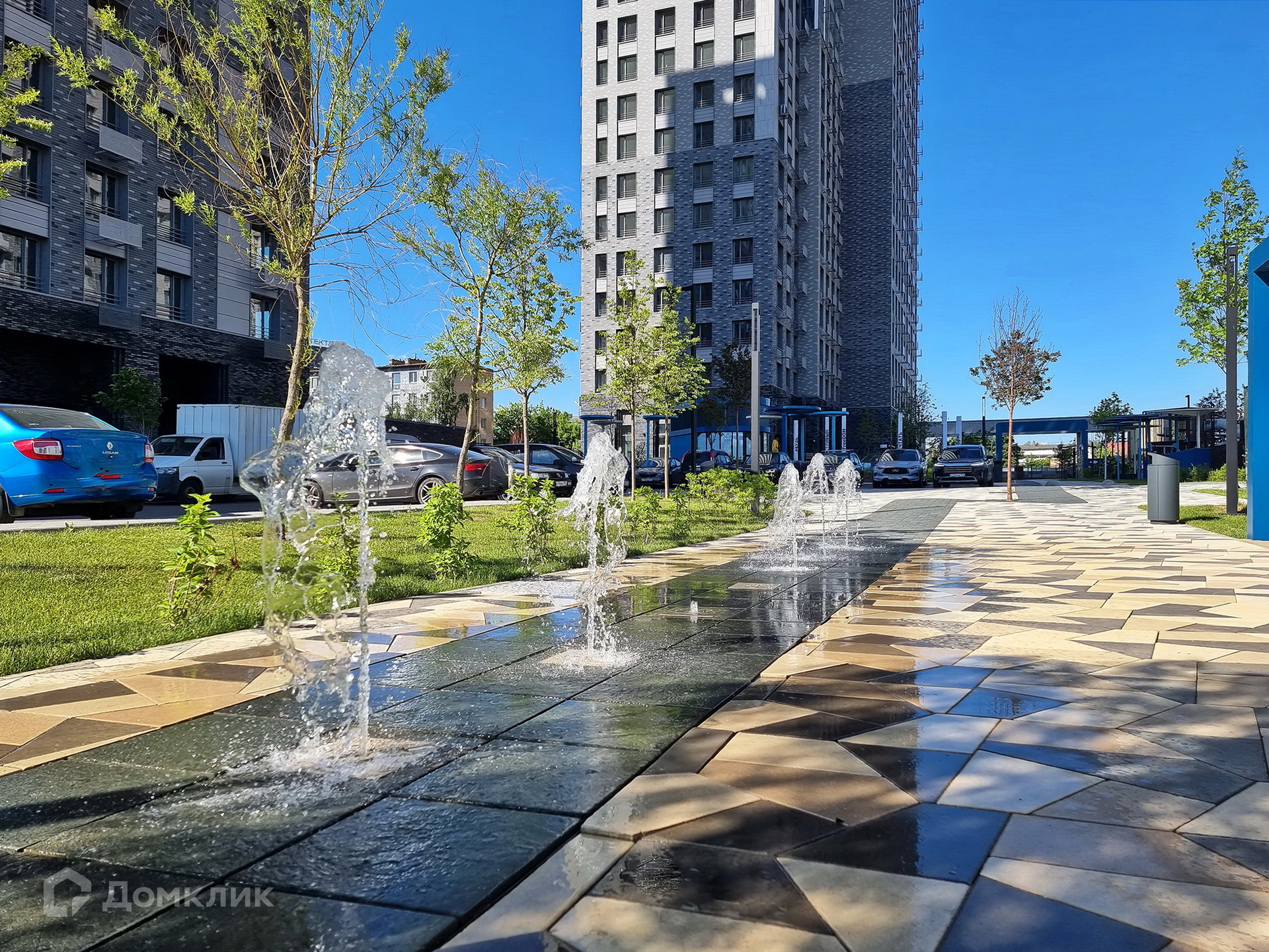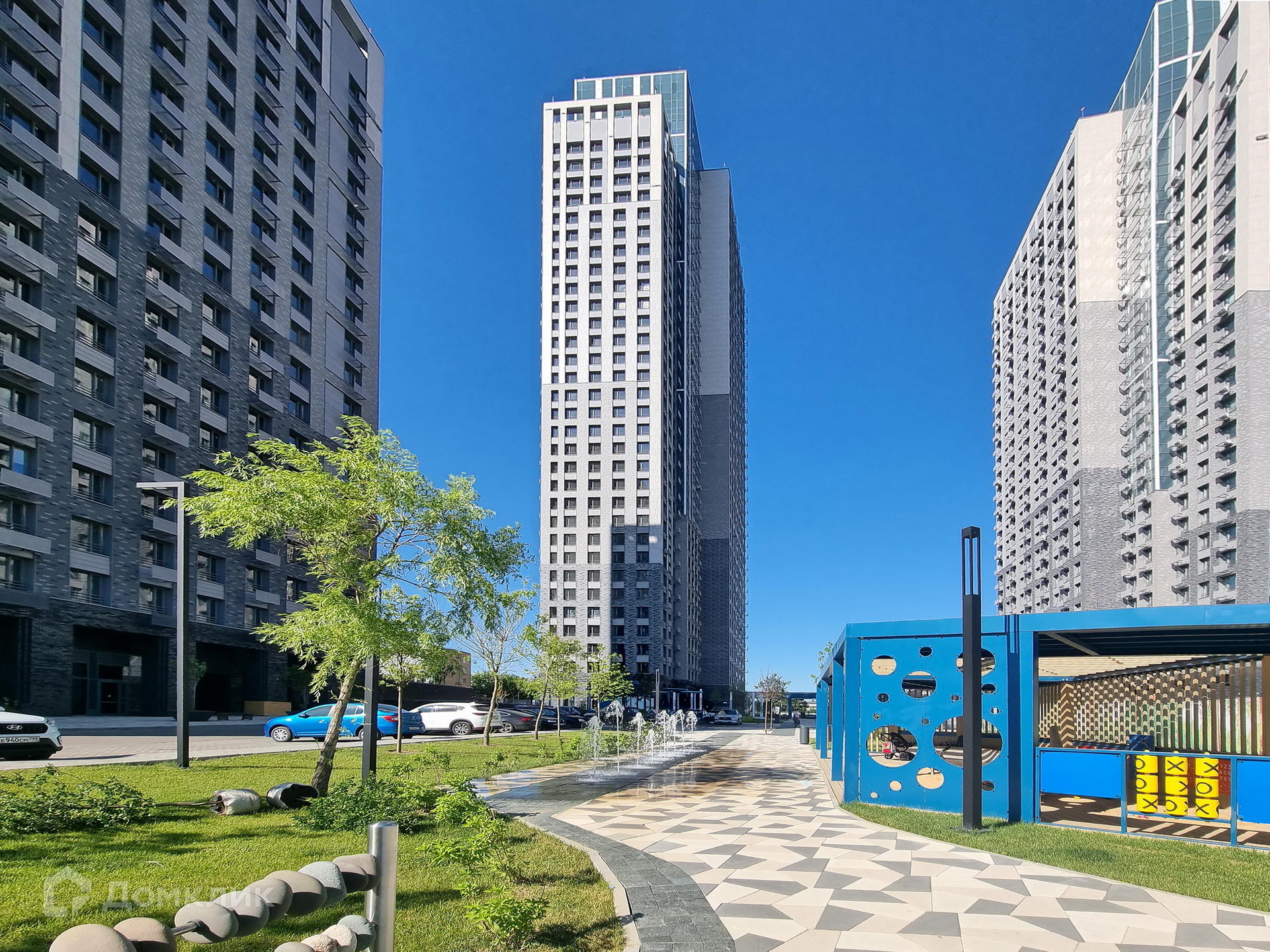 Удачно спланировано целостное внутридворовое пространство: ландшафтный парк с фонтанами, прогулочными и беговыми маршрутами, обустроены зоны отдыха, игровые детские площадки. Комплекс полностью огорожен, имеет три КПП, обеспечен круглосуточной охраной и видеонаблюдением.