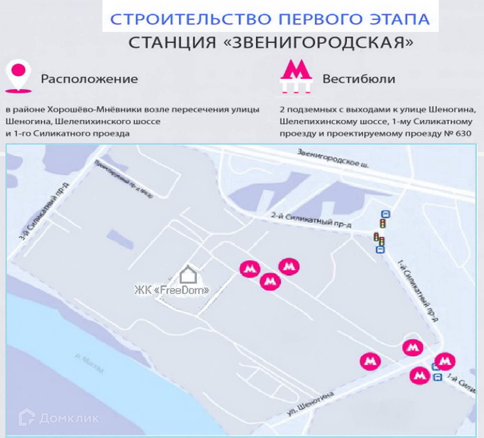 ЖК Freedom находится на первой линии у воды на Шелепихинской набережной, ведется реконструкция и благоустройство (от ТТК до 3-го Силикатного проезда). Новая станция метро "Звенигородская" будет располагаться на расстоянии 500 метров от дома.