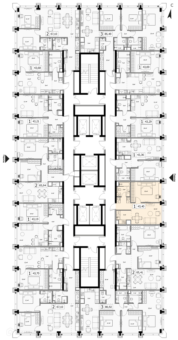 Общая площадь 43.4 м2