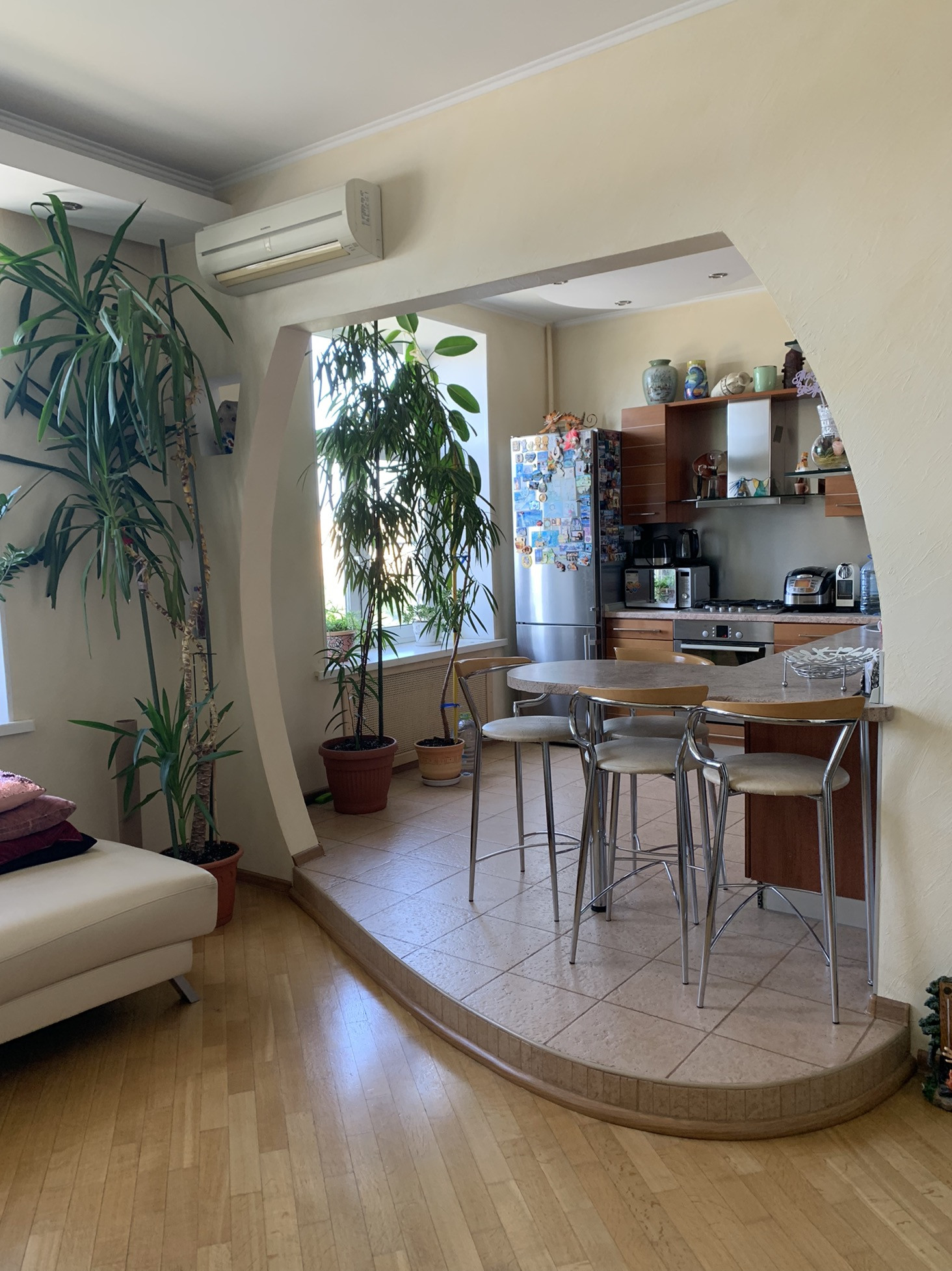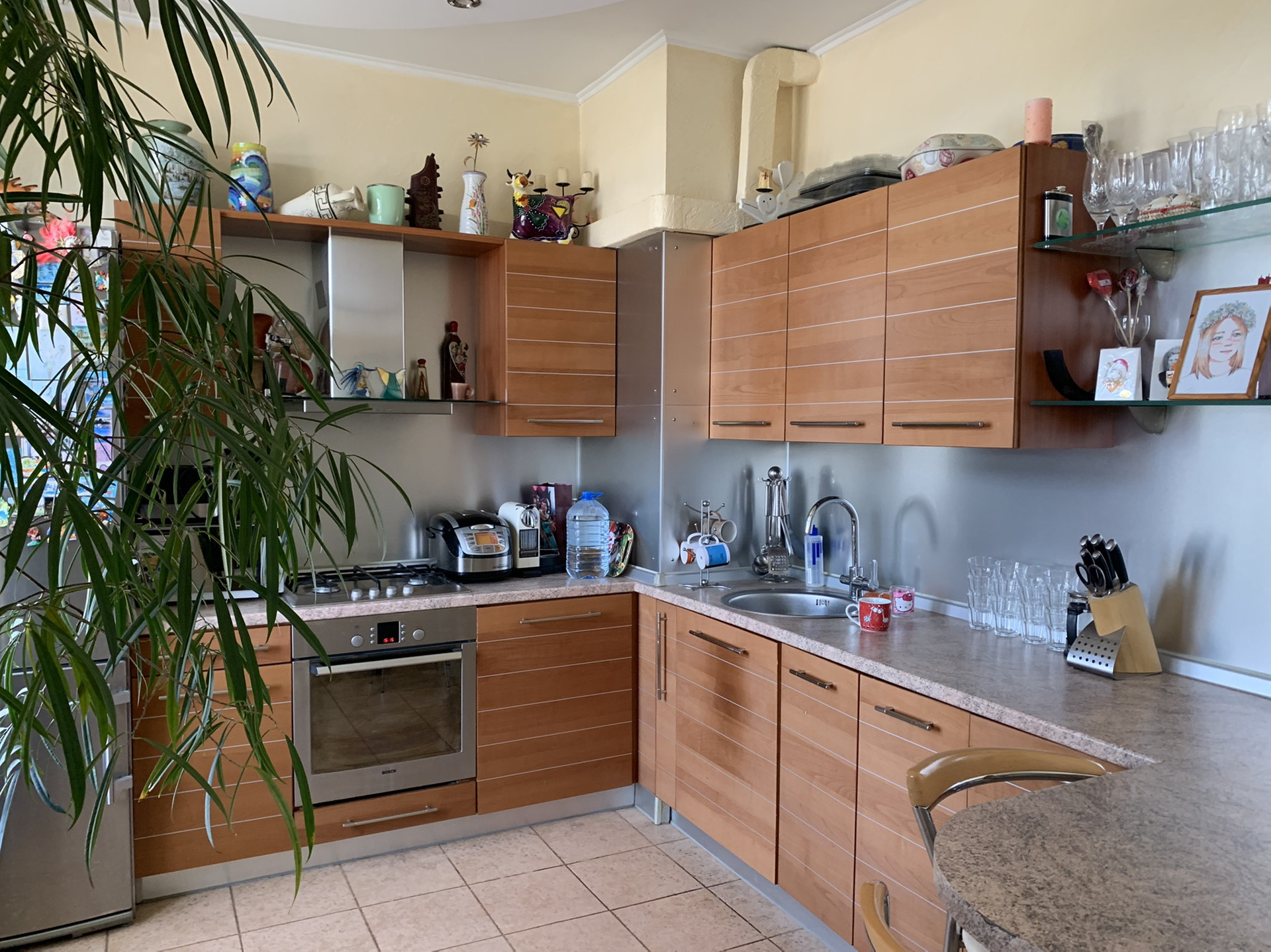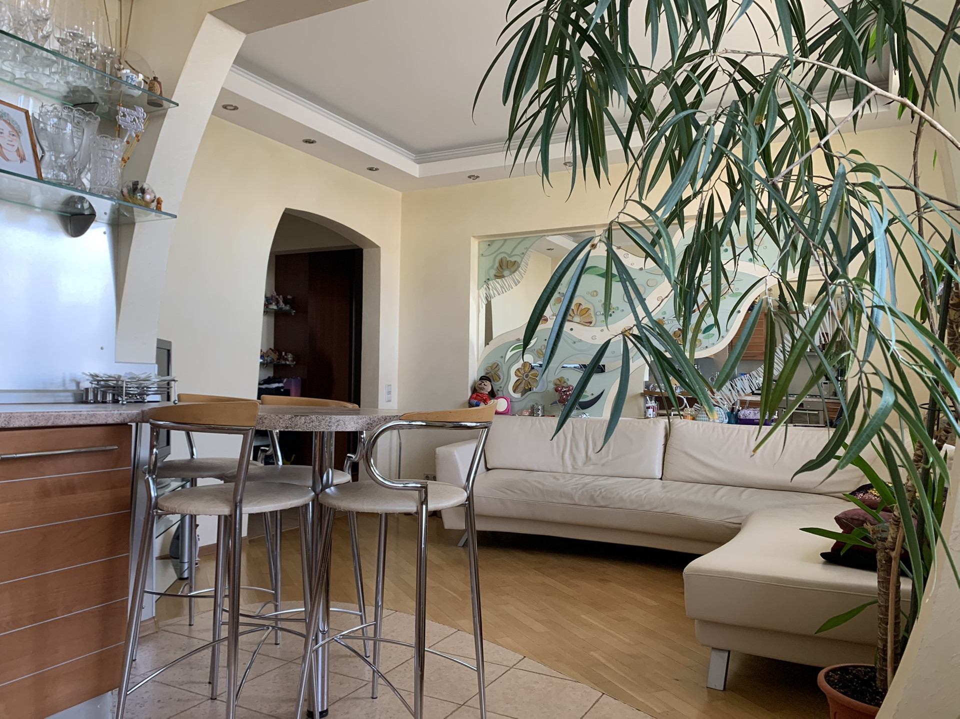 Дом 1957 г постройки. Толстые кирпичные стены. Потолки 3,2. В доме недавно был сделан ремонт. Очень качественный ремонт в квартире был выполнен около 10 лет назад. Производилась полностью замена полов, всех коммуникаций и электроснабжения. Квартира очень тёплая зимой и в то же время, в ней уютно и прохладно в летний зной. Две отдельные спальни 17 и 27 м2., выходят на разные стороны дома., но по фотку дом стоит в глубине от Кутузовского и там очень тихо и комфортно. Кухня 9 м2 объединена с гостинной 15 м2. Перепланировка узаконена. Стены все под покраску, в комнатах паркет, в коридоре, кухне и с/у плитка и тёплые полы.