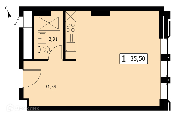 Общая площадь 35.5 м2
