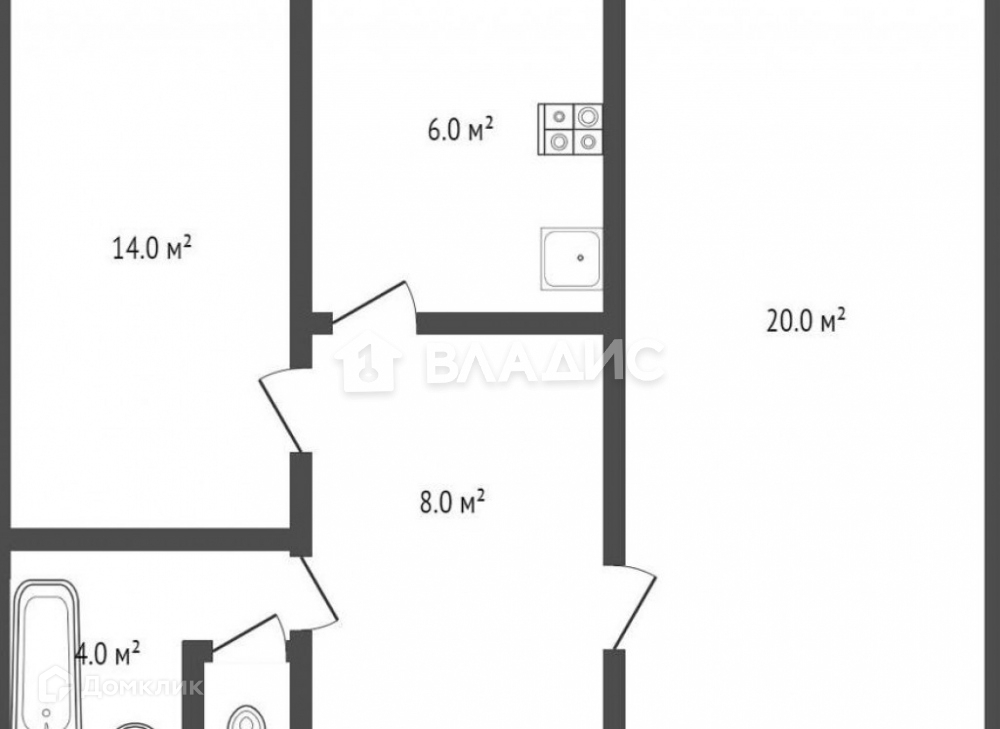 Общая площадь 52 м2