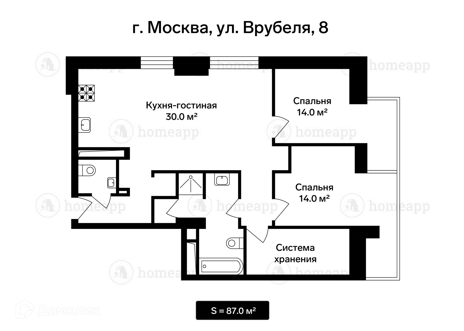 3-комнатная квартира, 90 м2, этаж 13 / 30, на продажу в Москве, улица Врубеля, 8