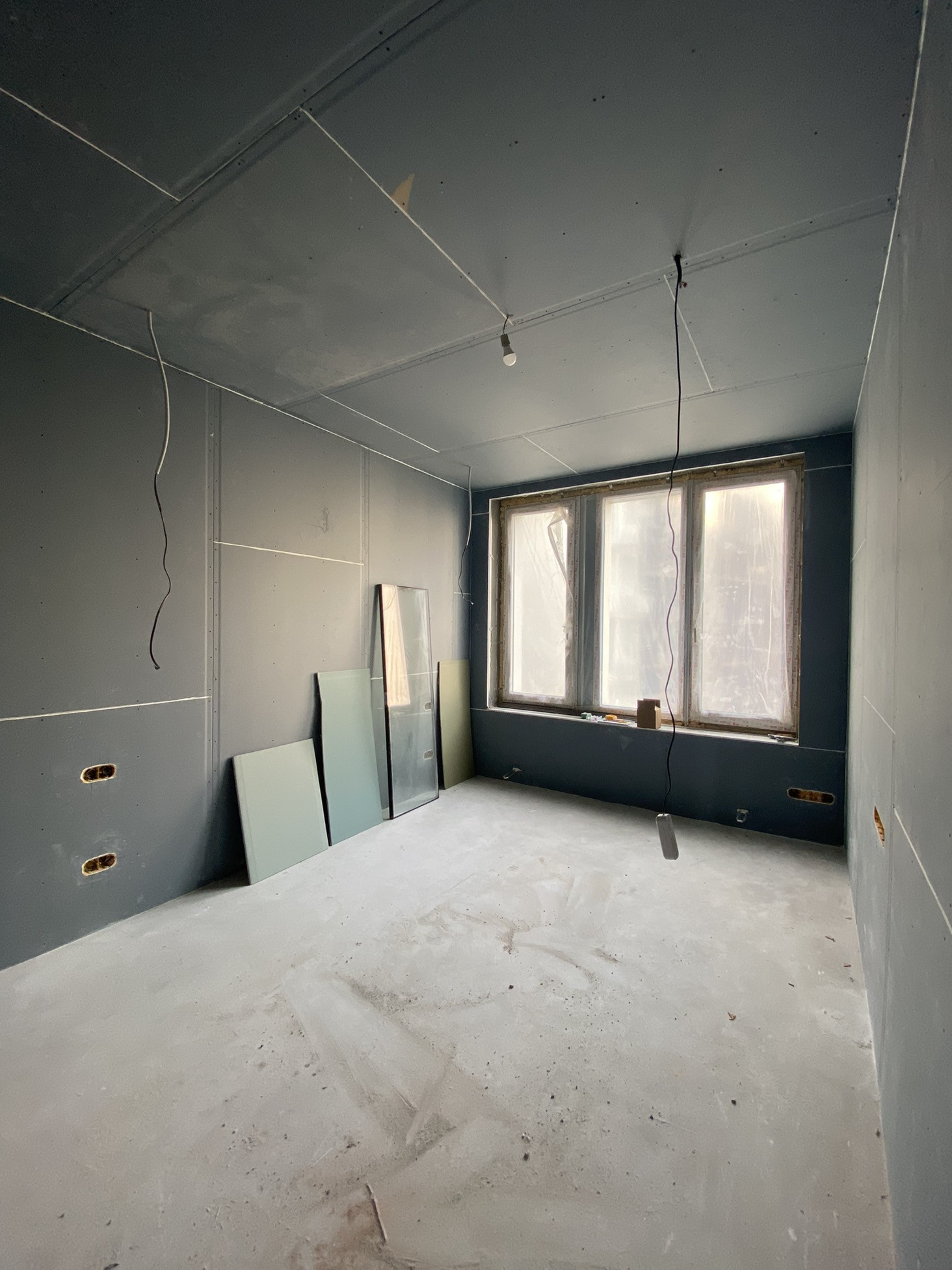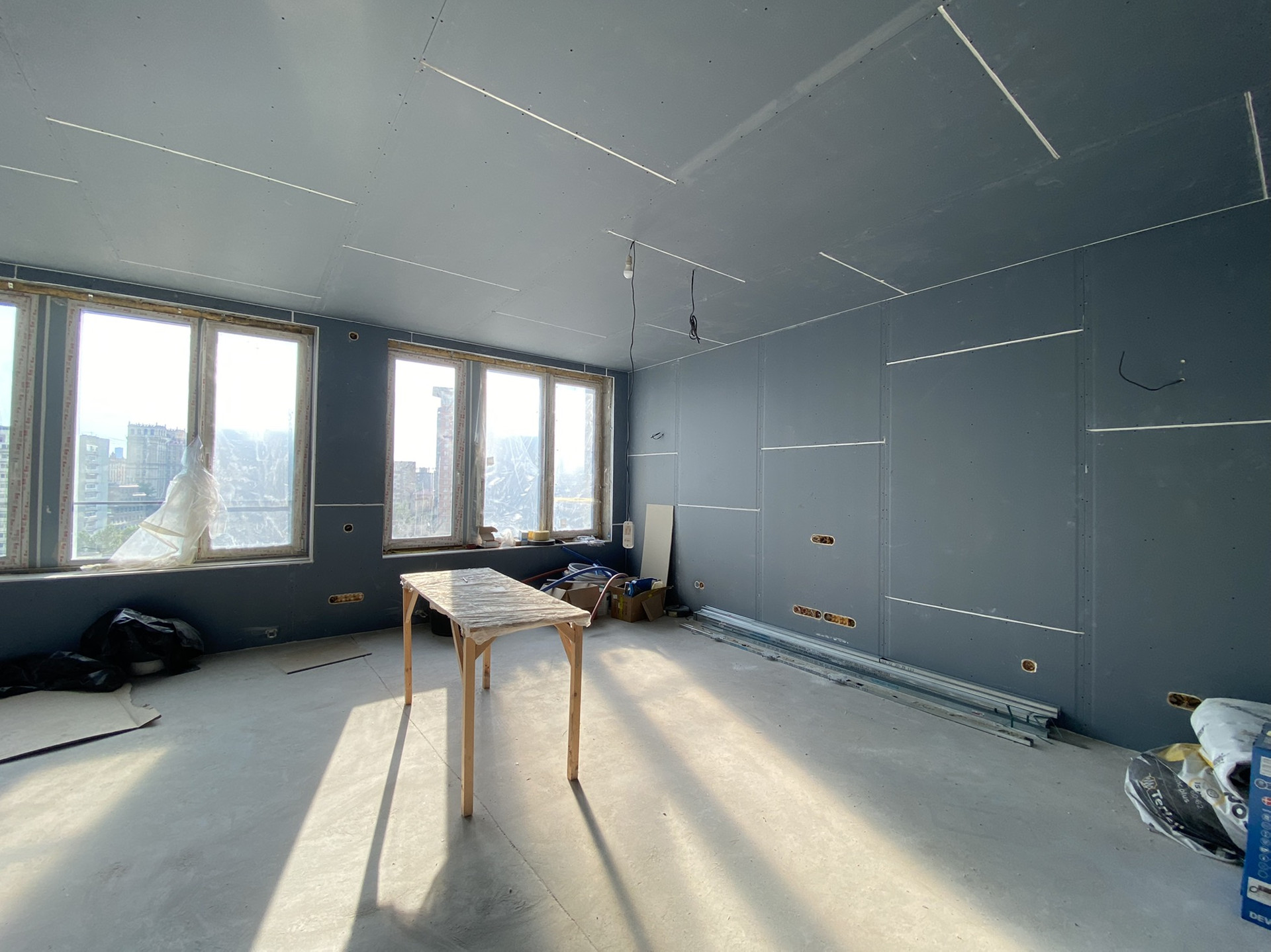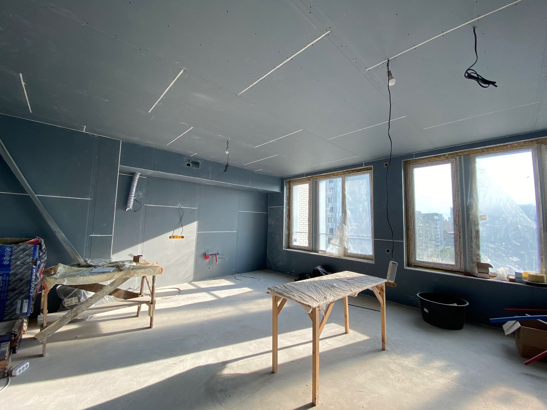 - Закончена черновая отделкой, все подготовлено под чистовую,