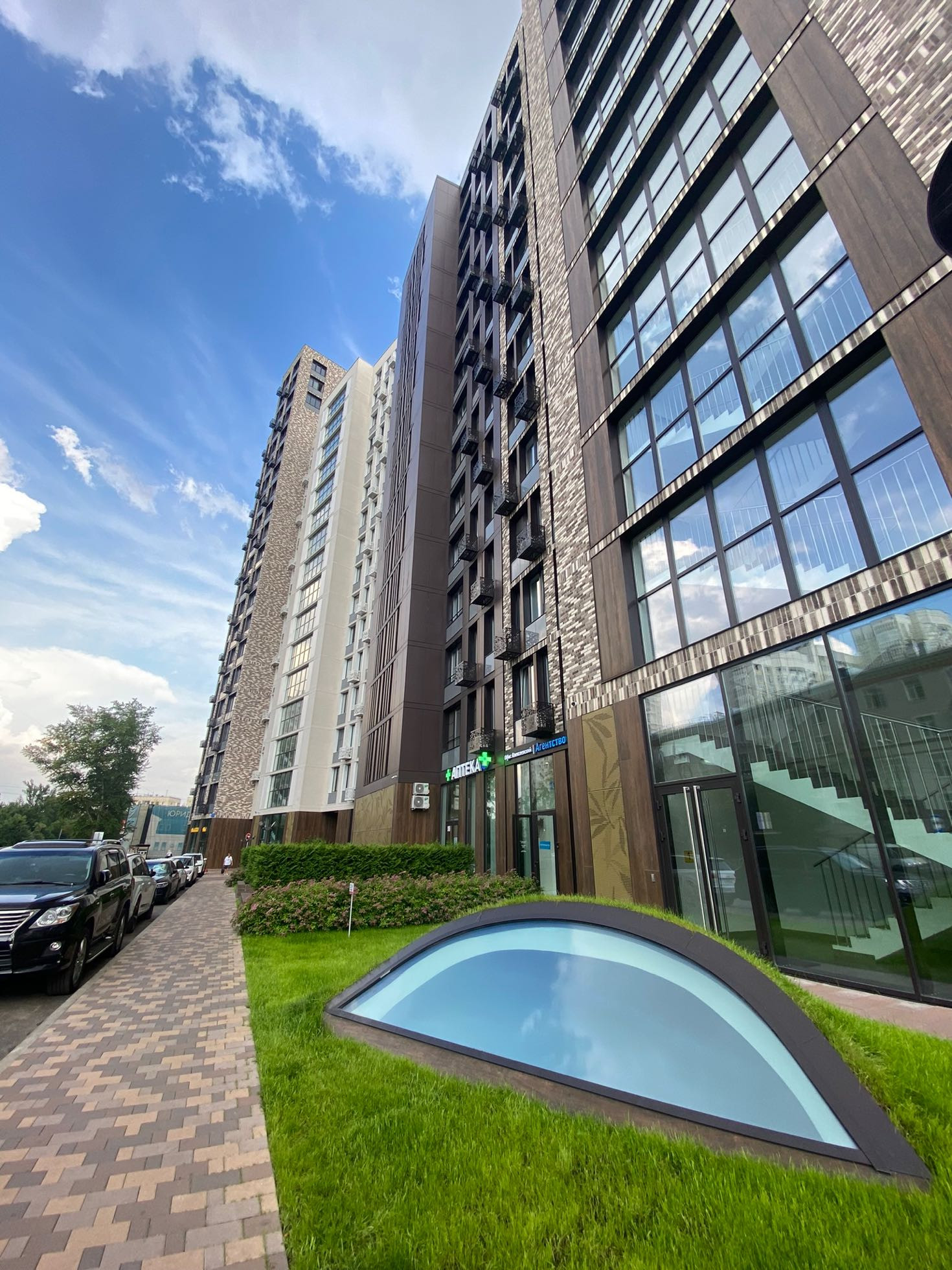 Уже открыты и функционируют магазины, фитнес клуб World class с бассейном, пекарня с кофе и круассанами, салоны красоты, кафе и прочая инфраструктуры.