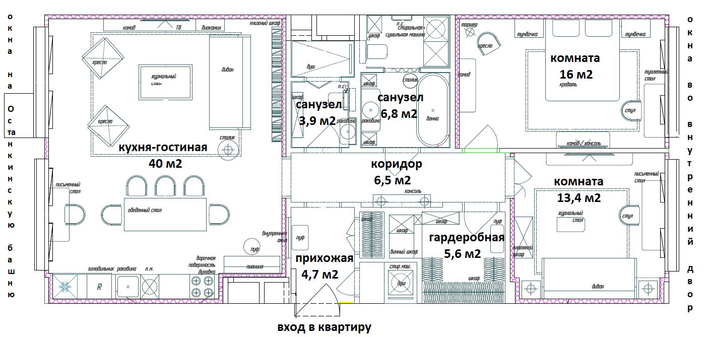 большая кухня-гостиная- 40 м2,