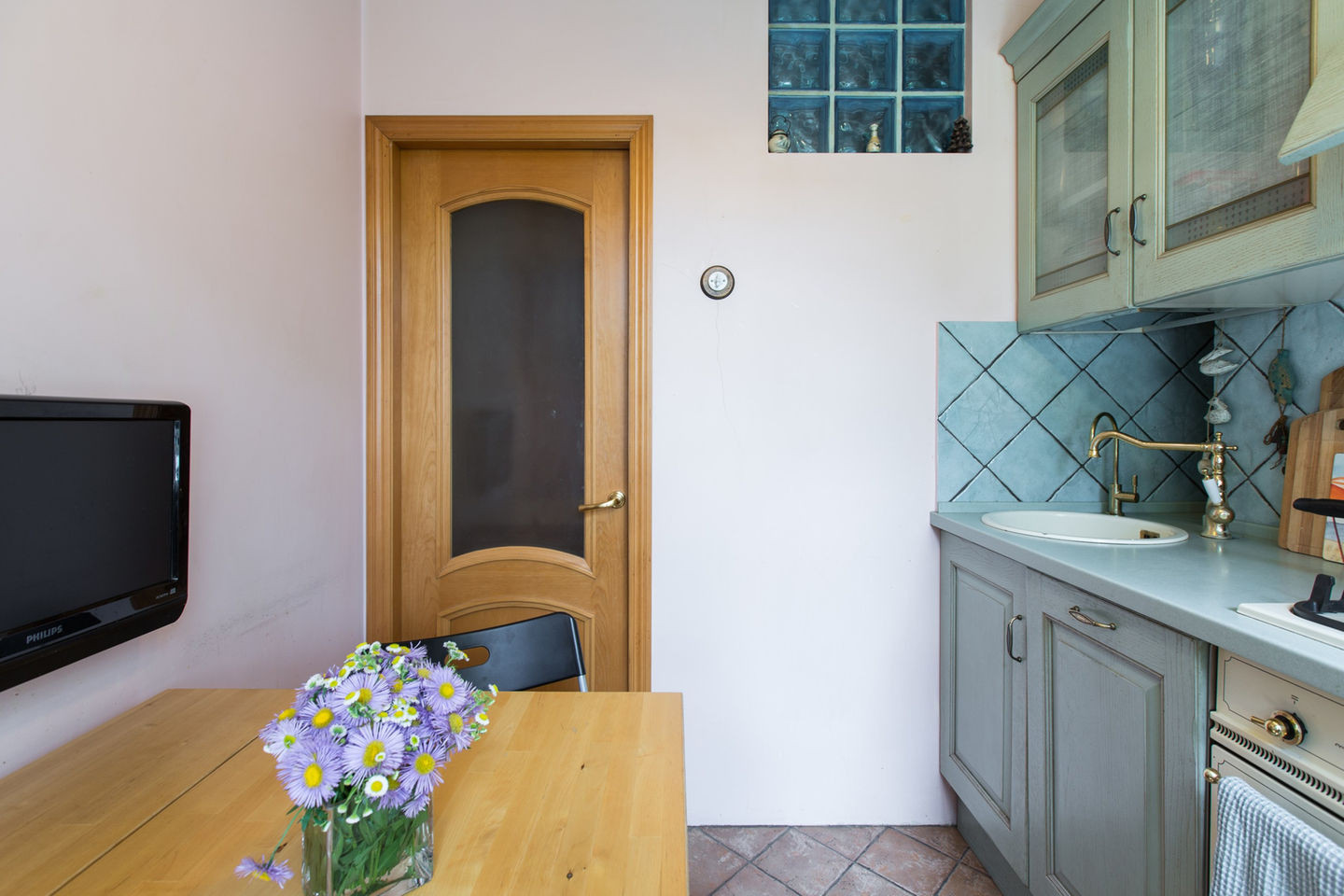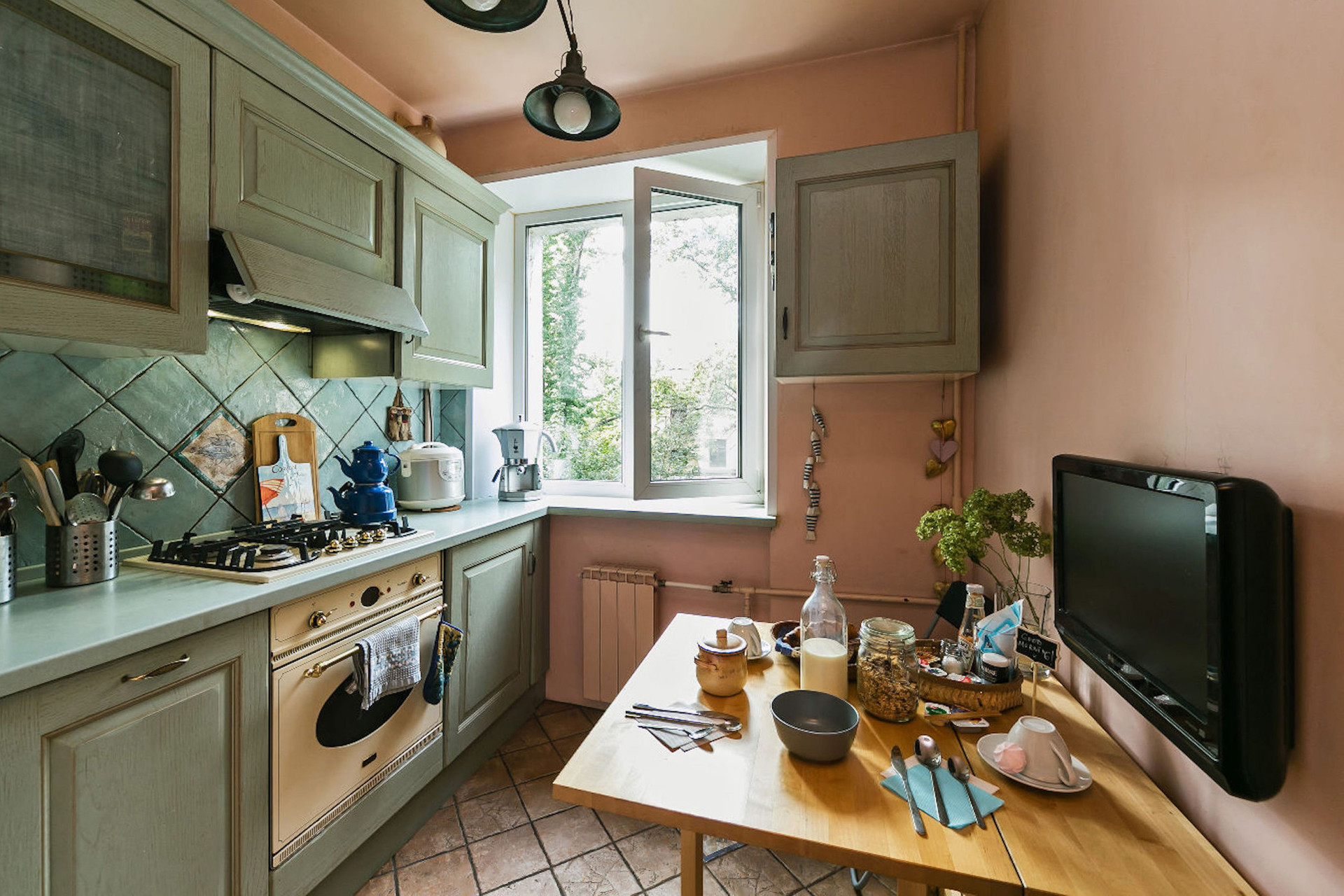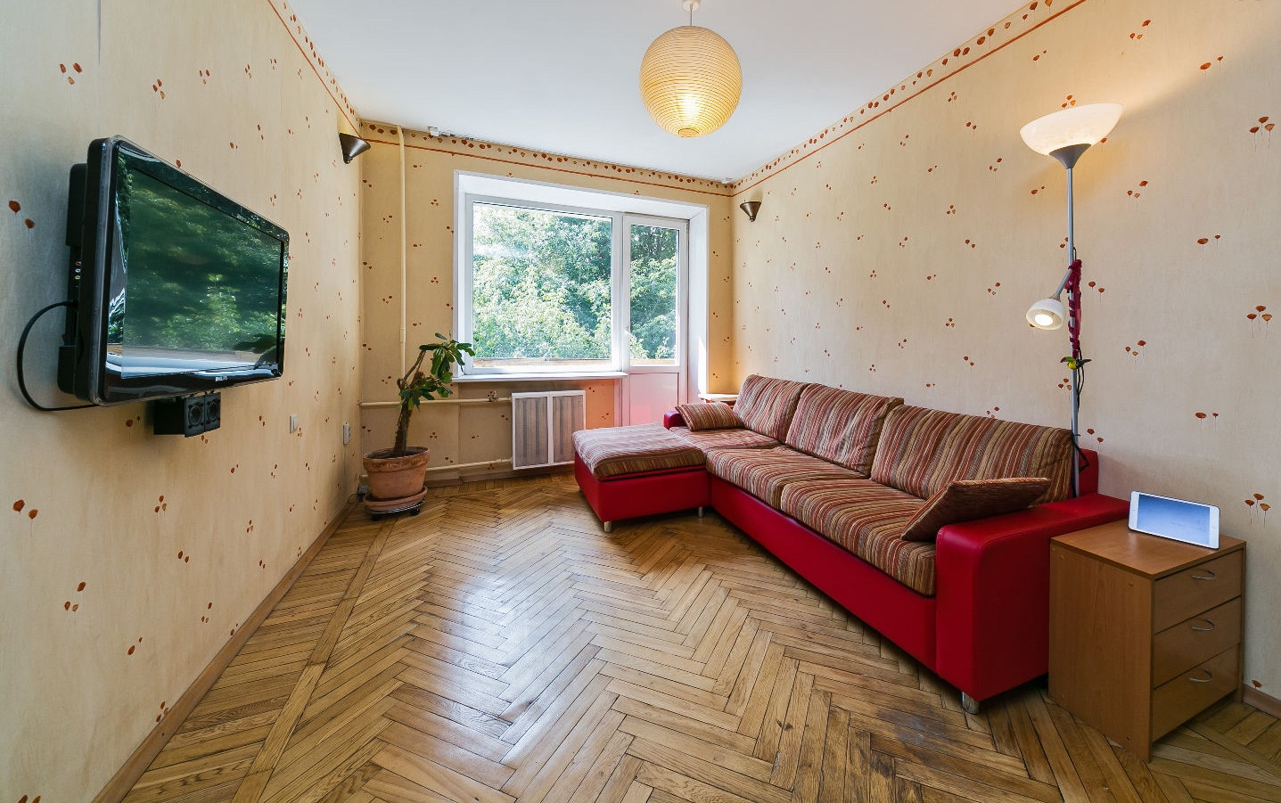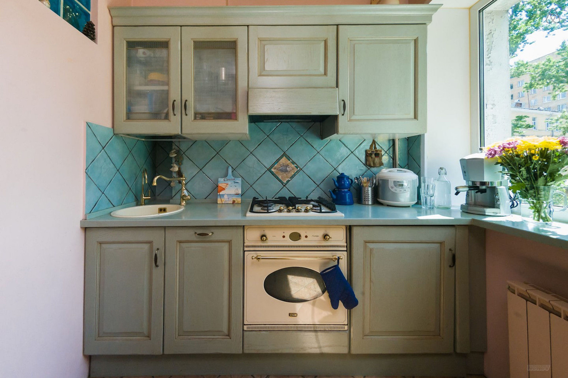 Квартира очень УЮТНАЯ, все окна выходят в зеленый сад, нет машин под окнами. ТИХО как за городом, только птички поют.