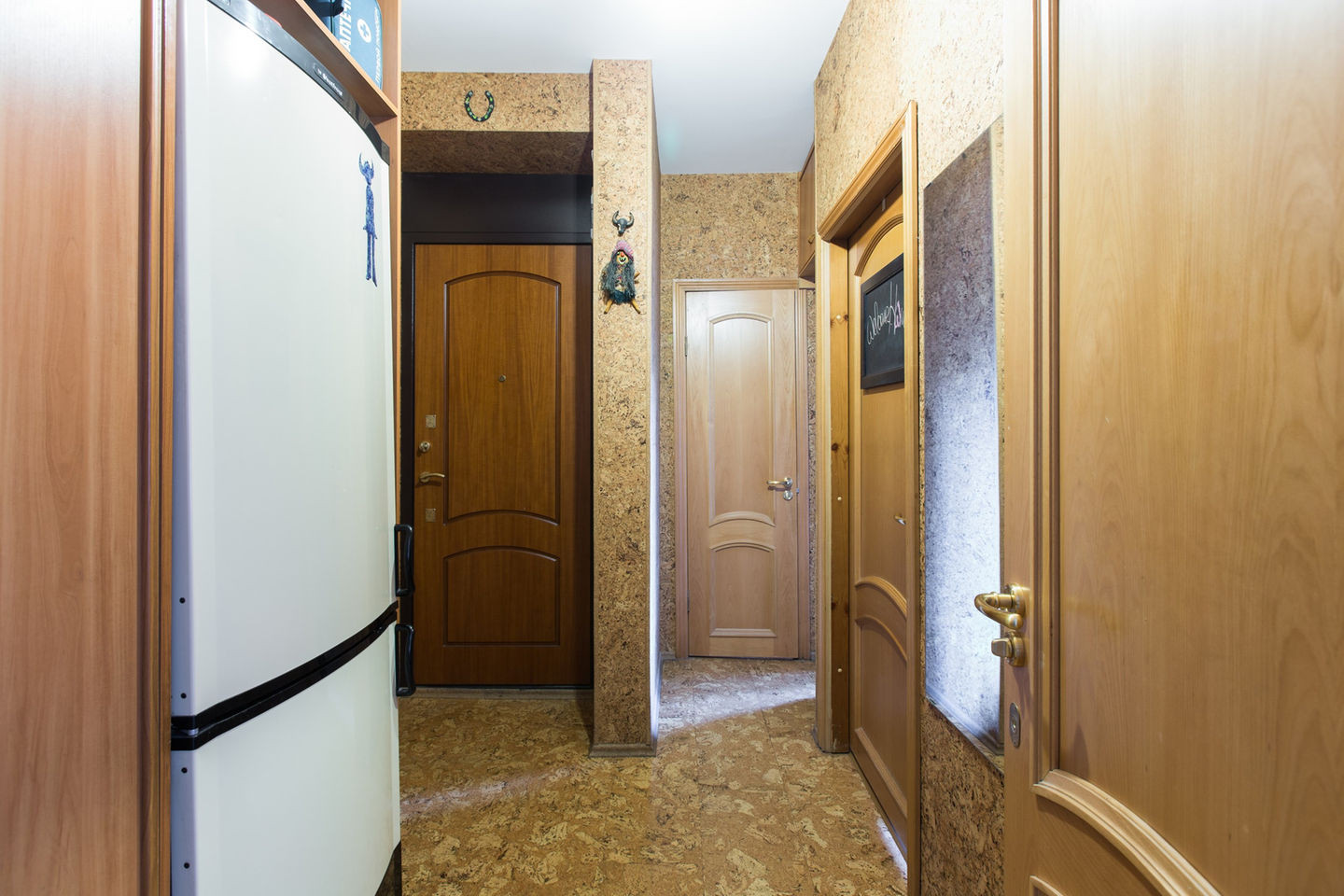 КАЧЕСТВЕННЫЙ РЕМОНТ, сделан с любовью. Элитная итальянская кухня Scavolini, встроены посудомоечная и стиральная машины, газовая варочная панель и духовой шкаф Ilve (Италия). В большой комнате на полу паркет. Во второй комнате и в коридоре на полу пробковый ламинат, на стенах - пробковое дерево, на кухне на полу итальянская плитка.