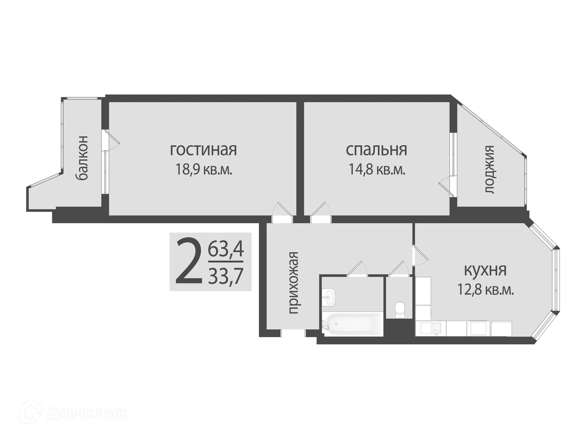 Общая площадь 64 м2